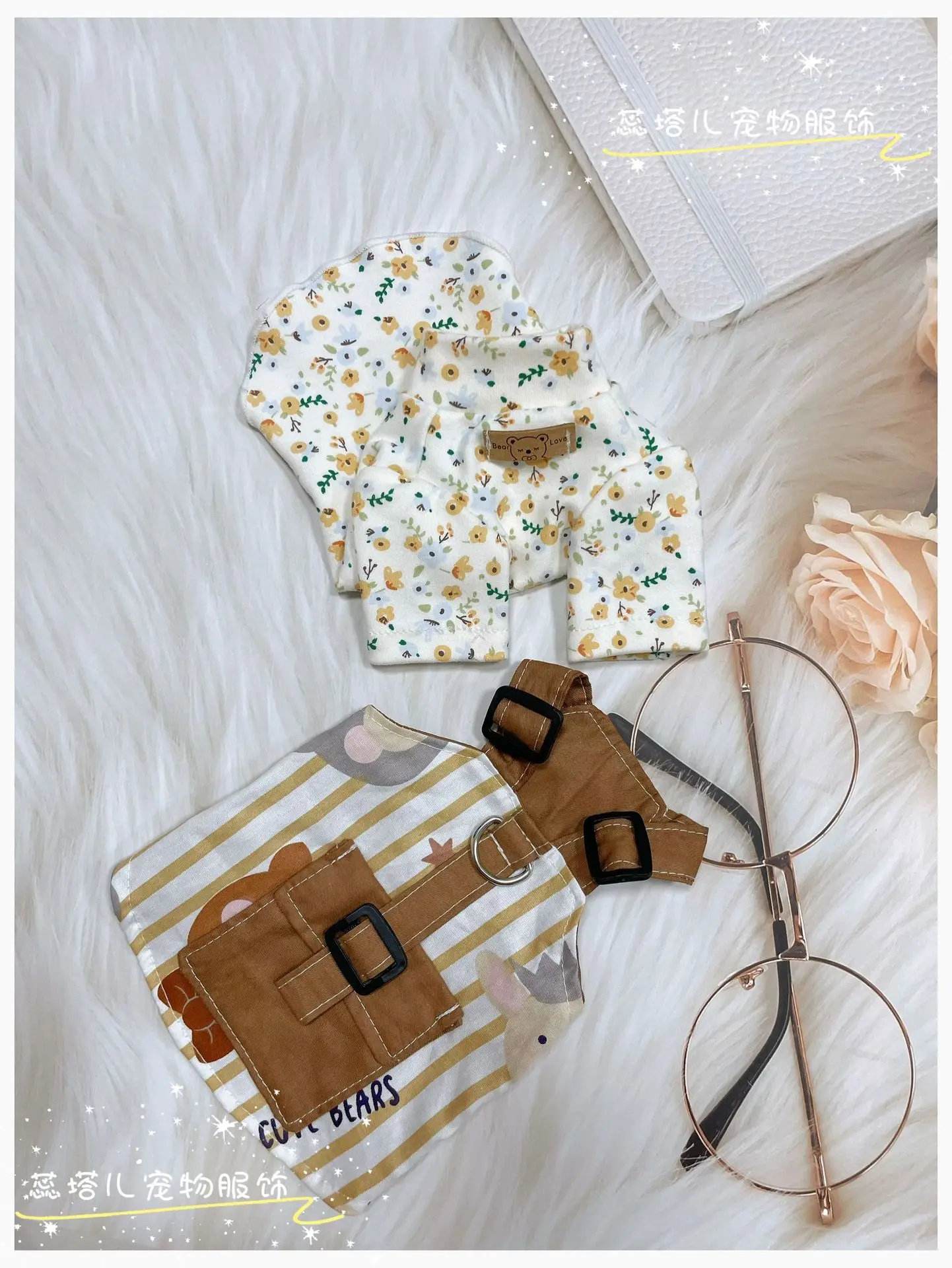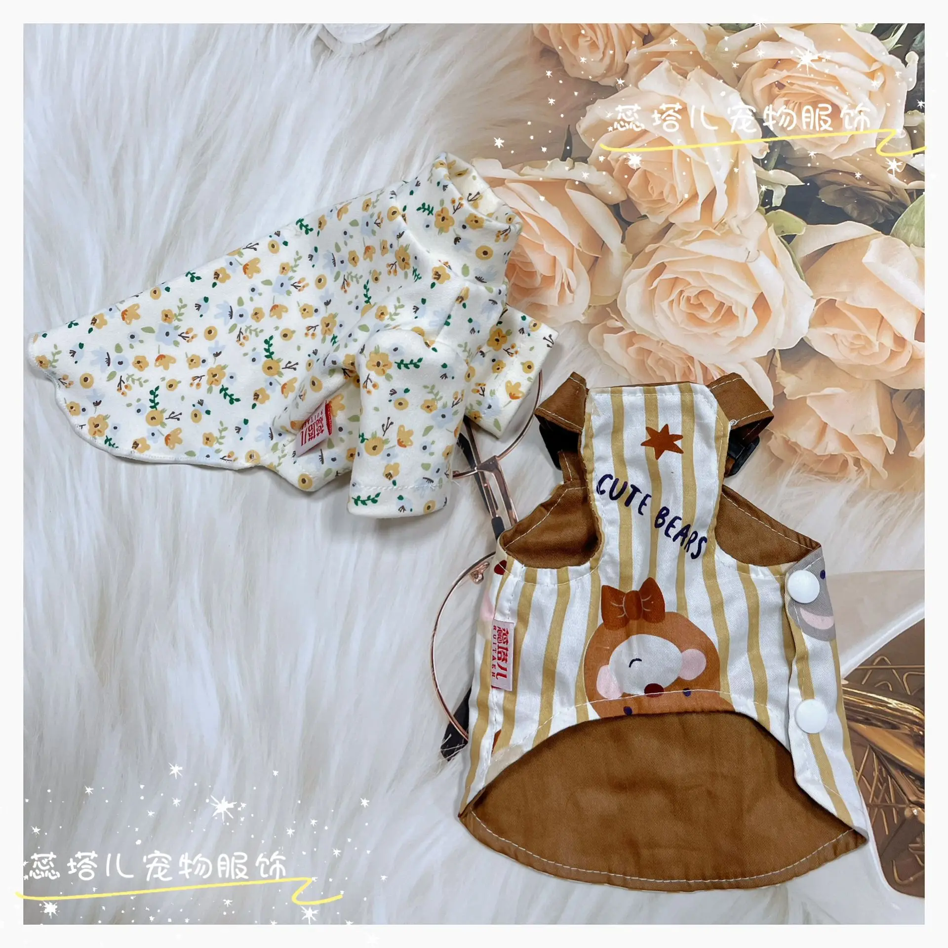 Falda con tirantes para perro, camisa con parte inferior Floral, ropa de trabajo de algodón puro para mascotas, chaleco, conjunto de oso, vestidos para perros pequeños, ropa para cachorros