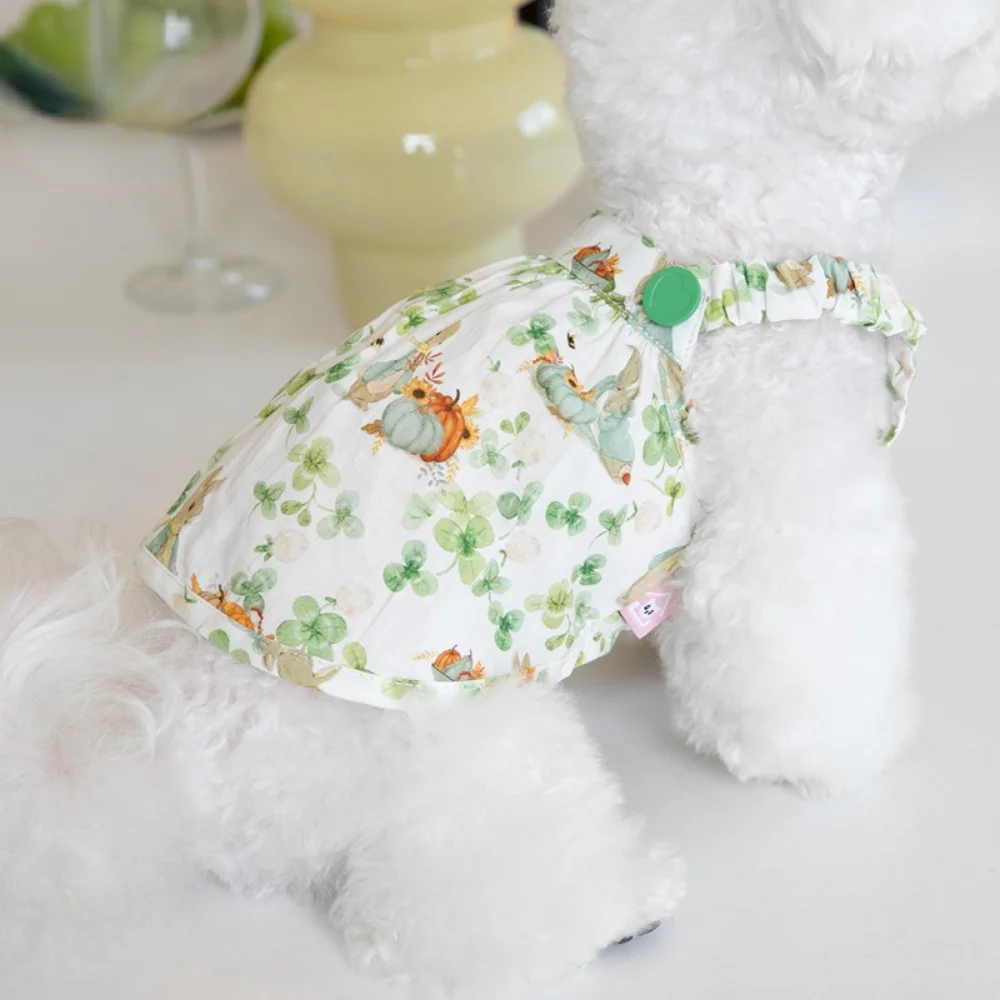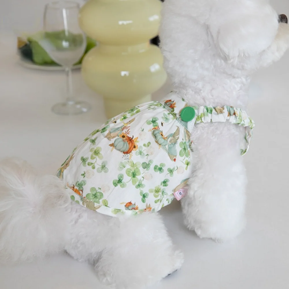 Falda con tirantes para perro, chaleco con estampado de hierba de la suerte, conejo, gato, perro