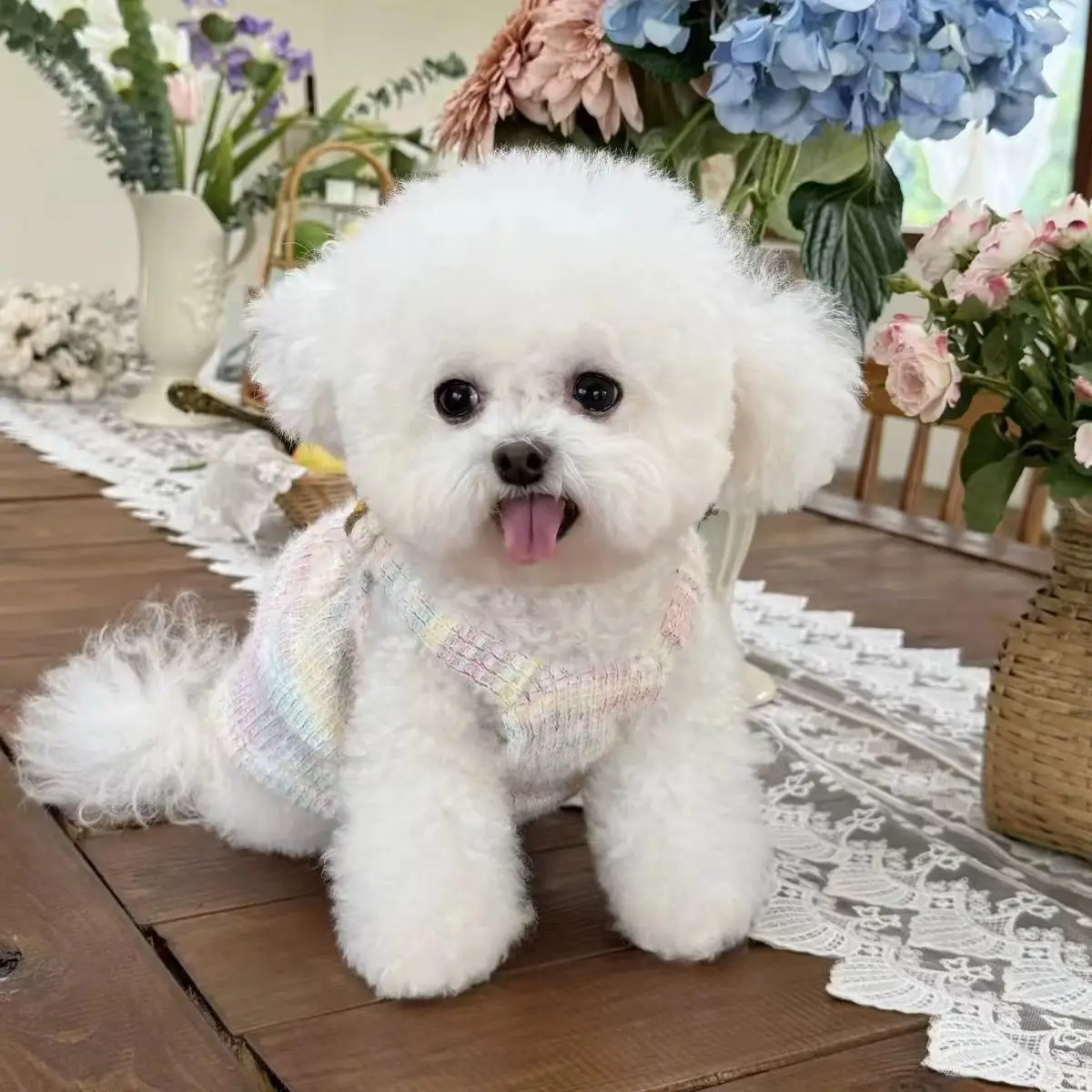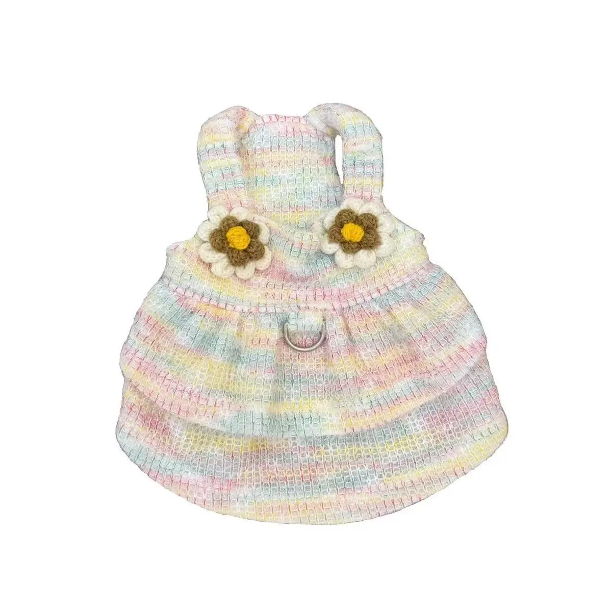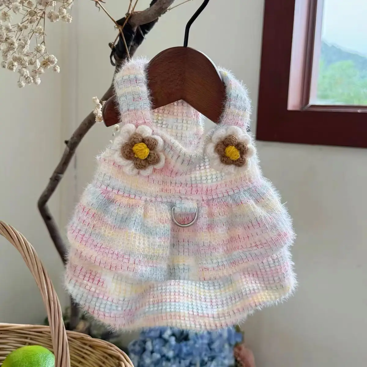 Falda con tirantes de punto colorida para mascotas, falda con tirantes de punto colorida, suéter cálido para perros y gatos, ropa para perros pequeños, Otoño/Invierno
