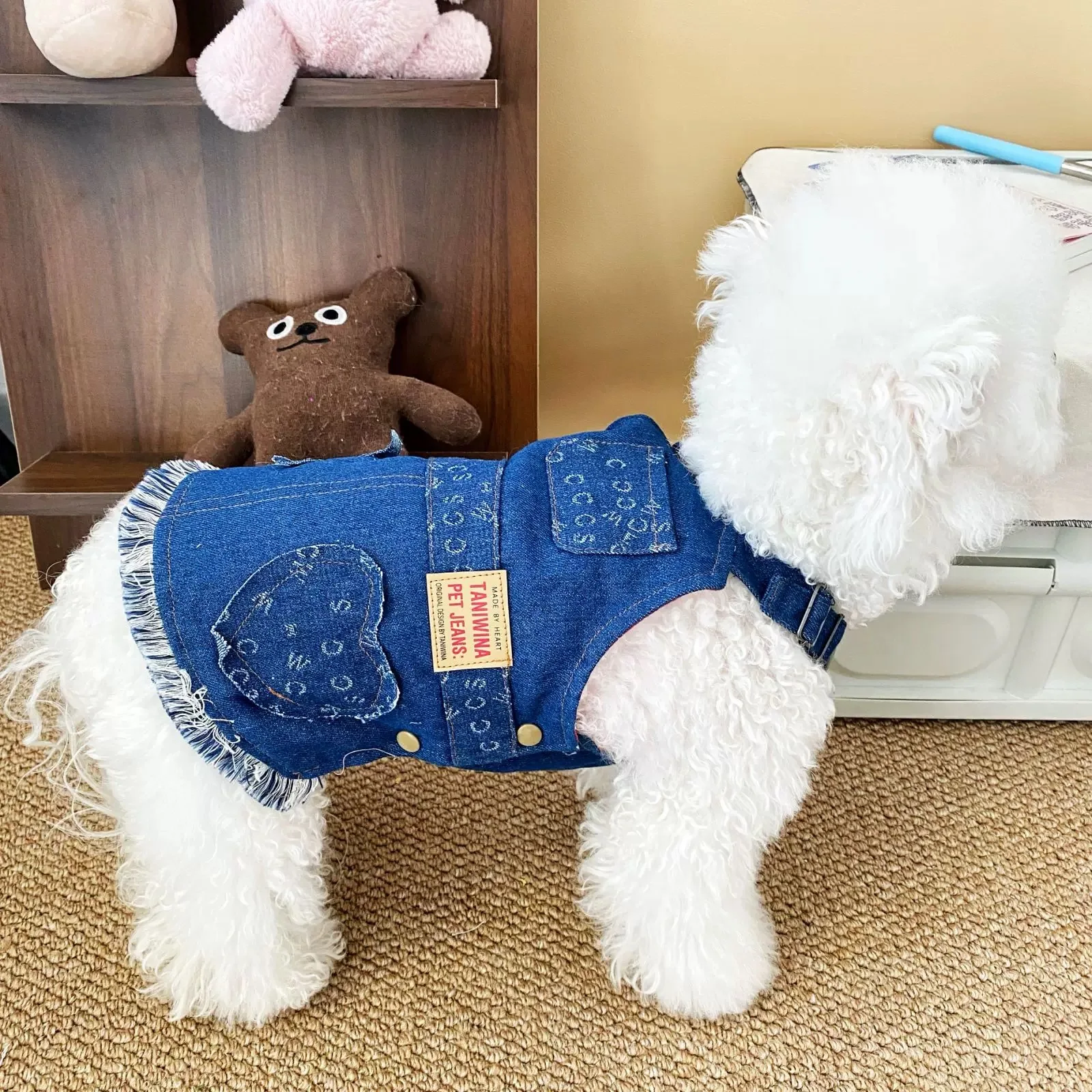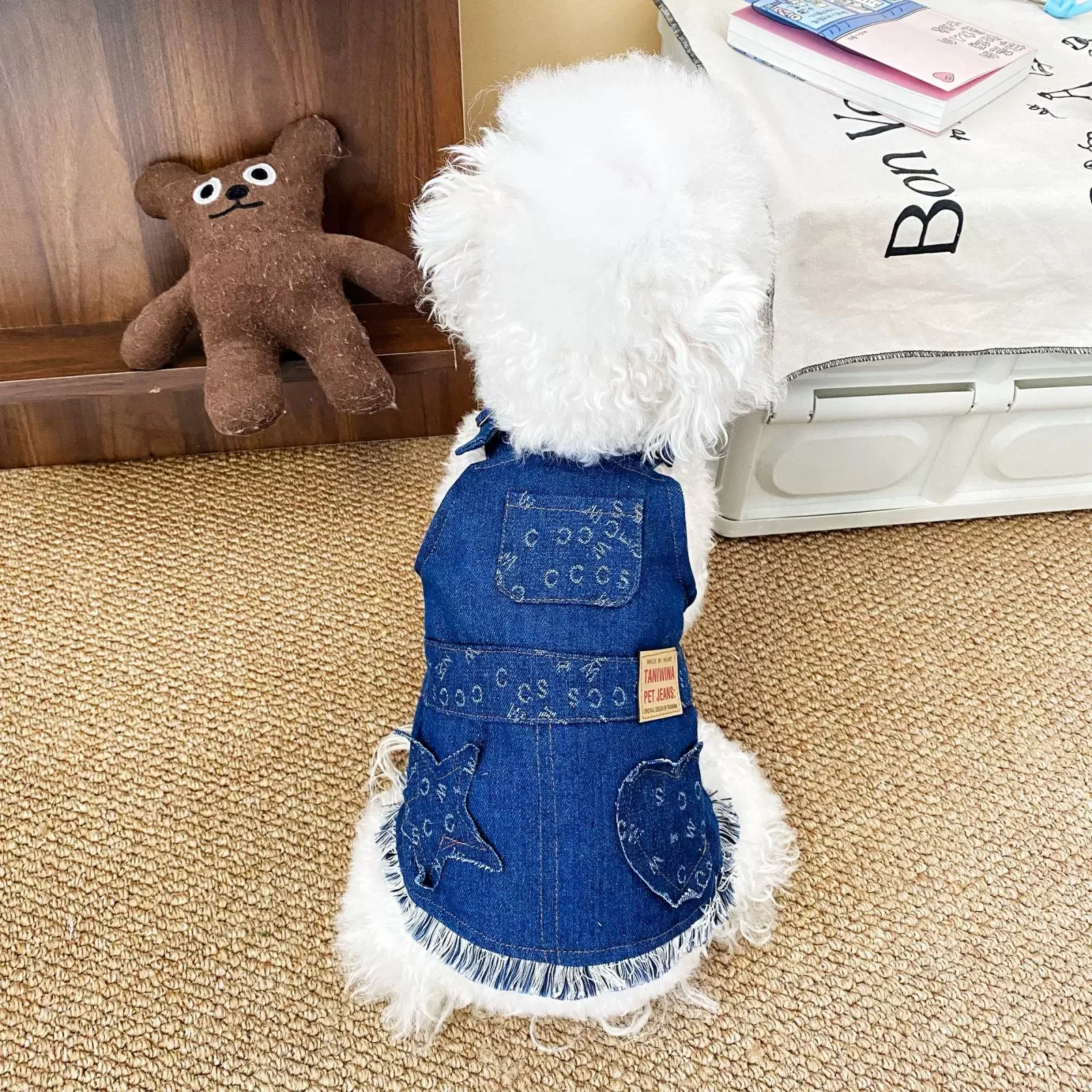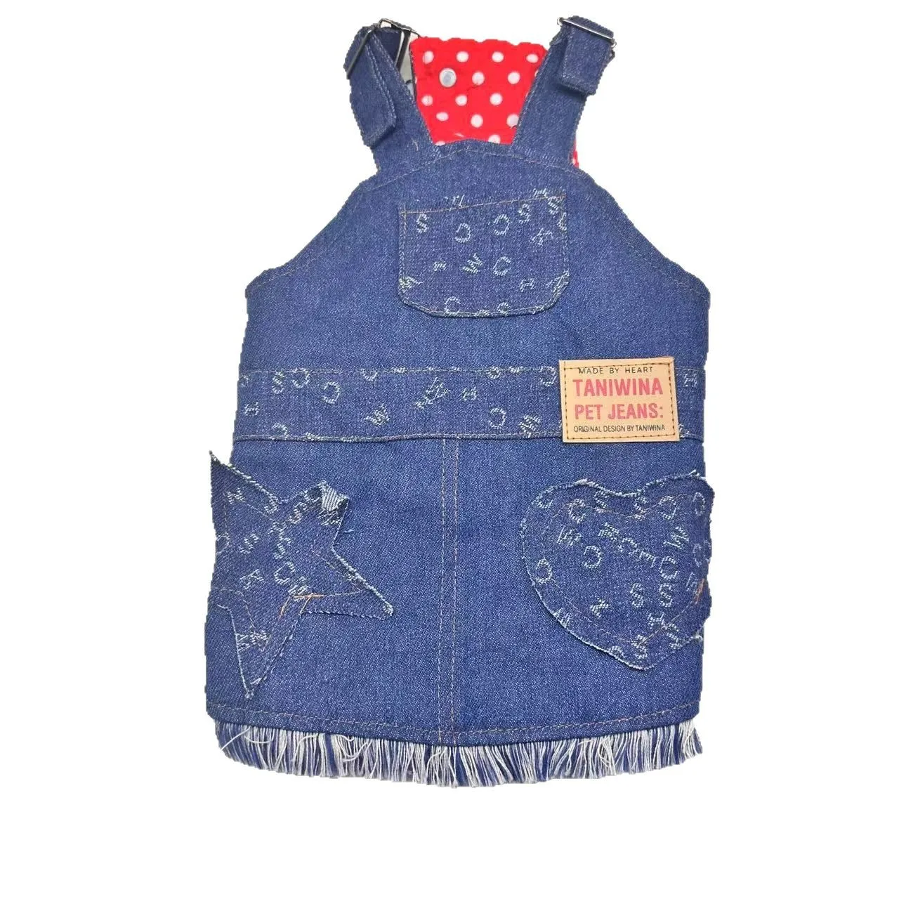 Falda con tirantes de vaquero para mascotas, vestido bonito de estrella de amor, vestidos para perros pequeños, ropa para cachorros pequeños