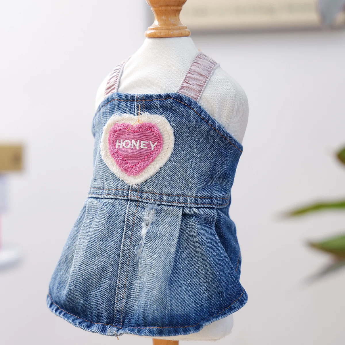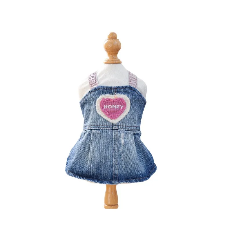 Falda vaquera contrastante para mascotas, falda vaquera bordada con amor informal para el Día de San Valentín, vestidos para perros pequeños, ropa para cachorros