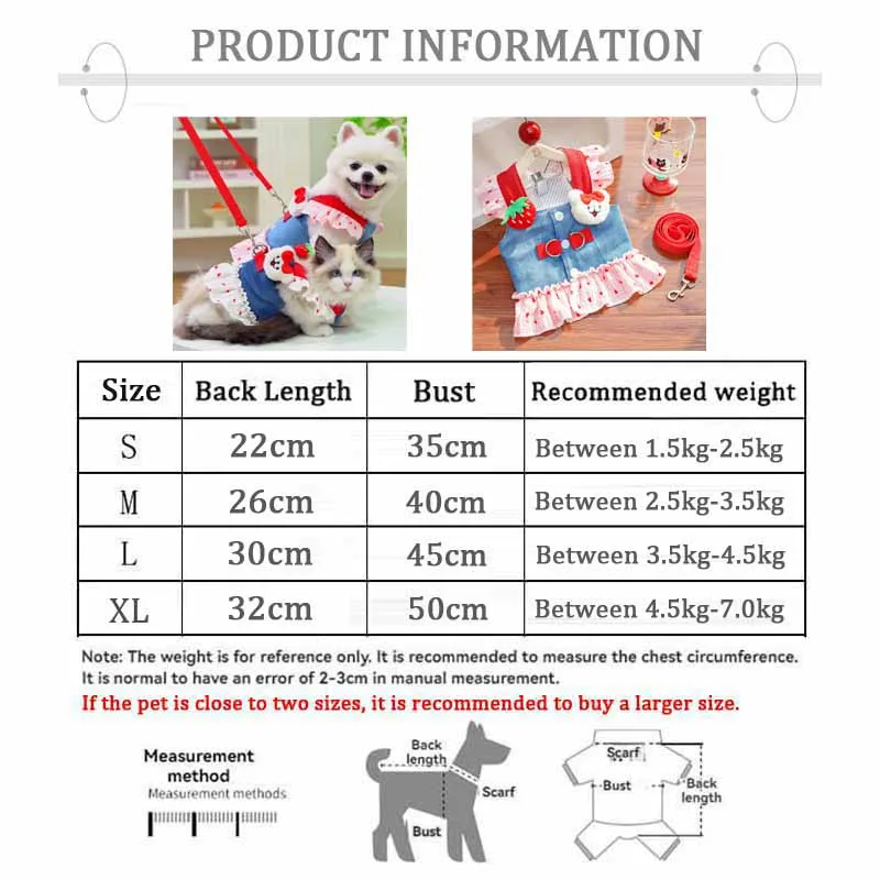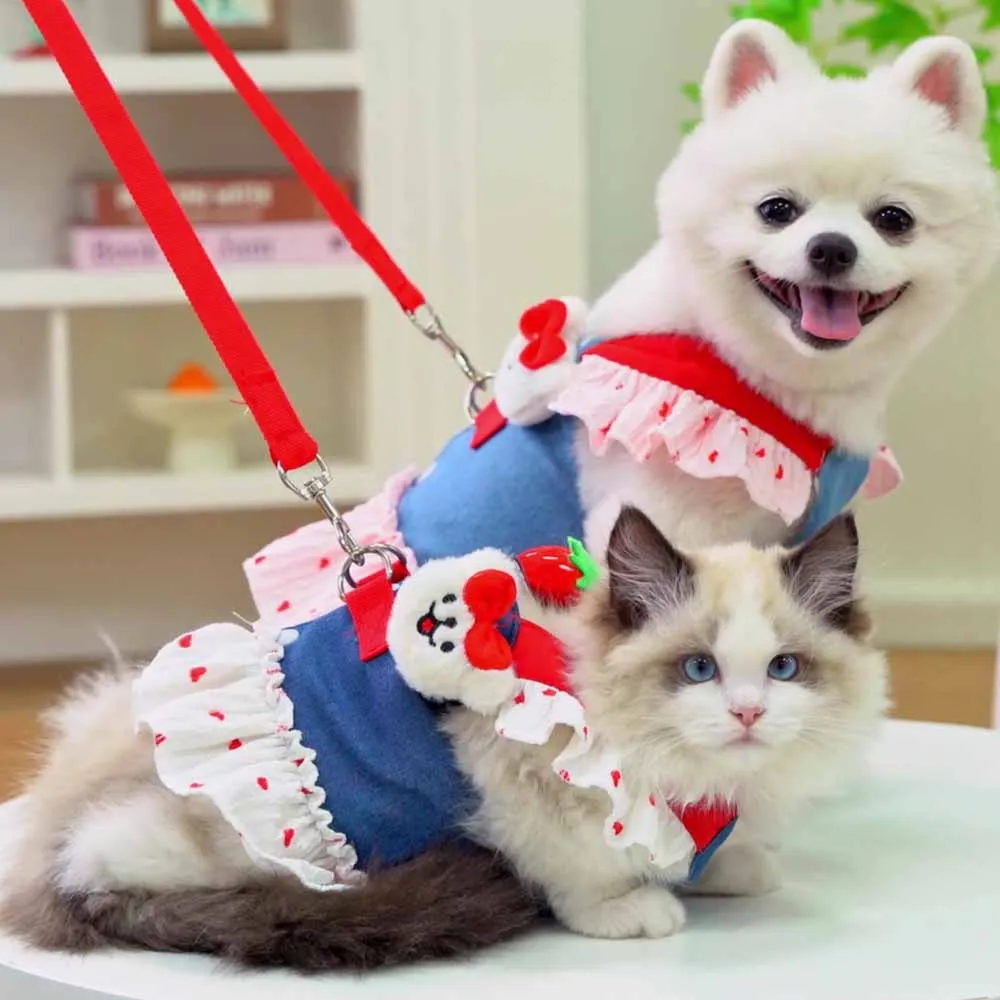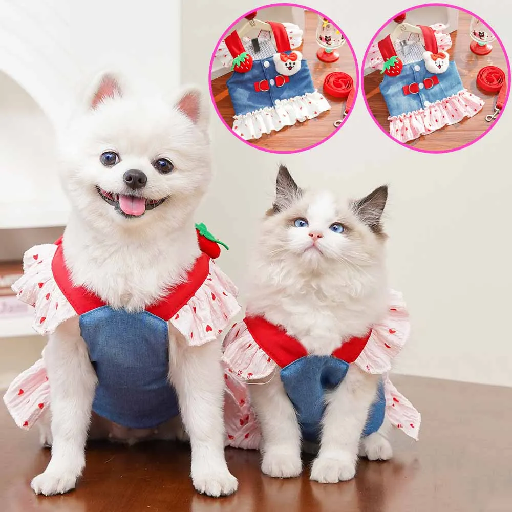 Falda vaquera para perro pequeño de verano, vestido para gato, conjunto de correa, chaleco, falda, ropa para gato, bonito vestido para perro, accesorios con gancho