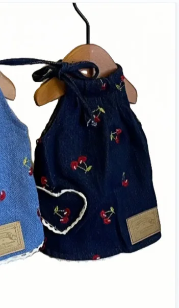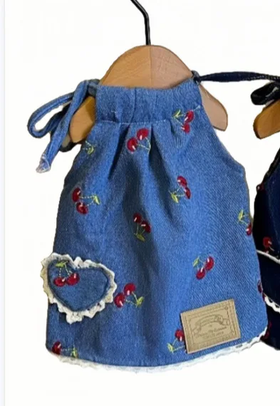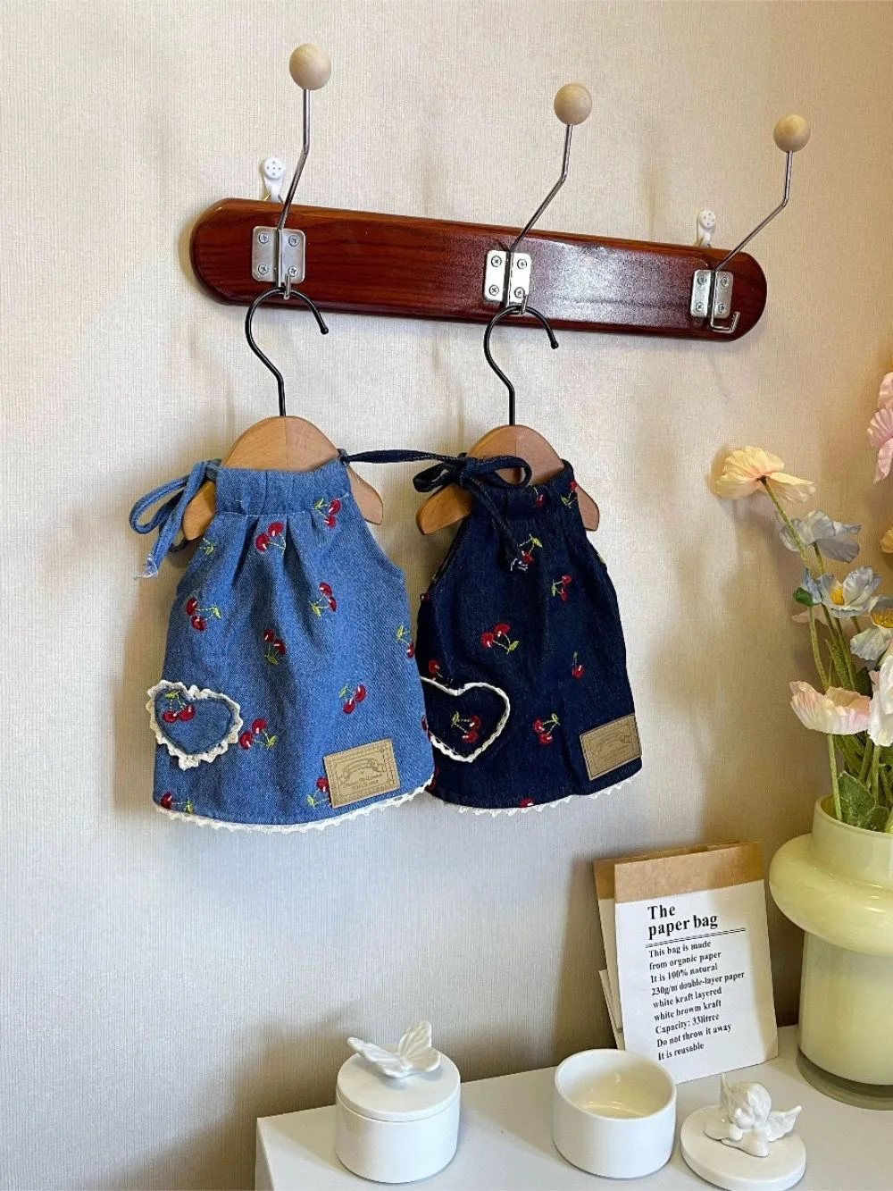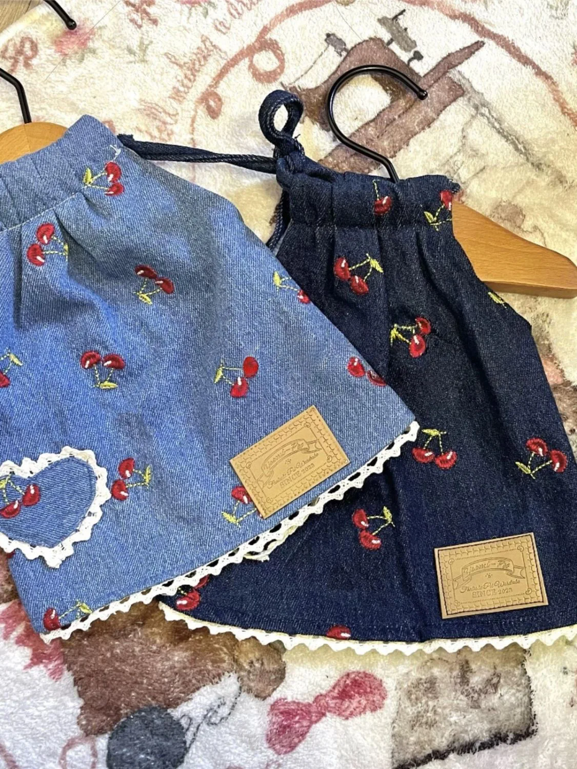 Falda vaquera con tirantes de cereza para mascotas, conjunto de ropa para pareja de Marcus, Yorkshire, chaleco para perros y gatos, ropa de diseñador para perros