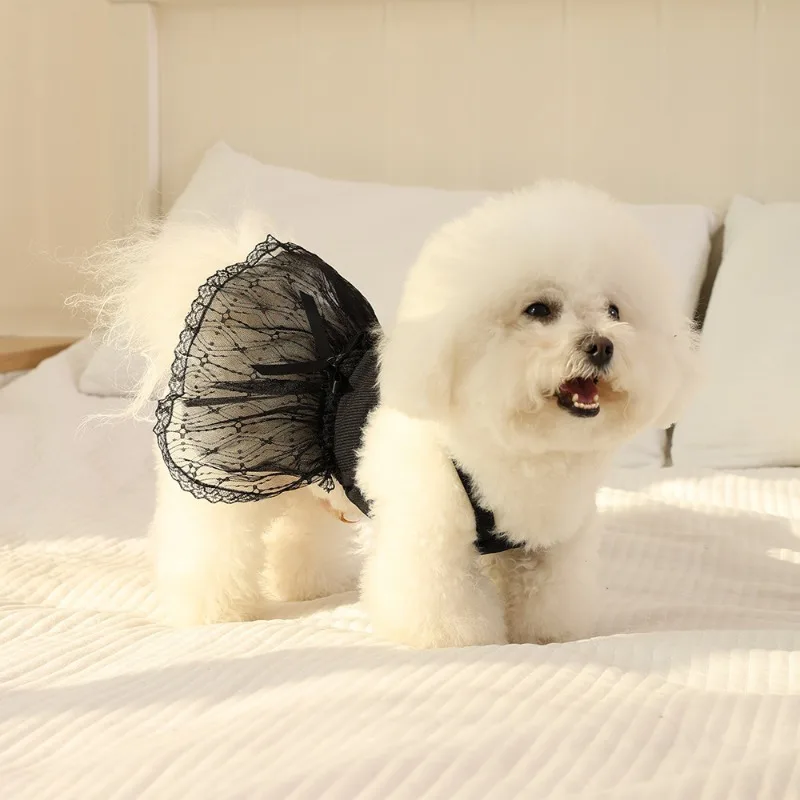 Faldas de moda para perros, vestidos de encaje para mascotas, vestido de princesa, vestidos de verano para perros, chaleco negro para perros, vestido para gatos, ropa para mascotas Chihuahua