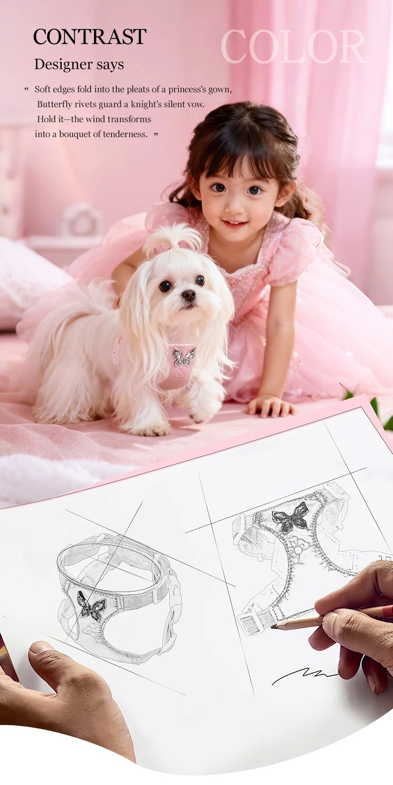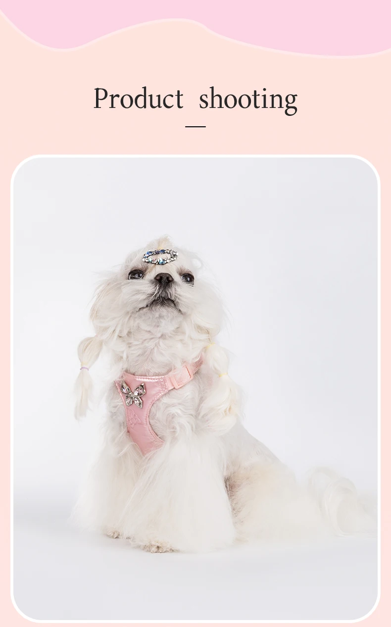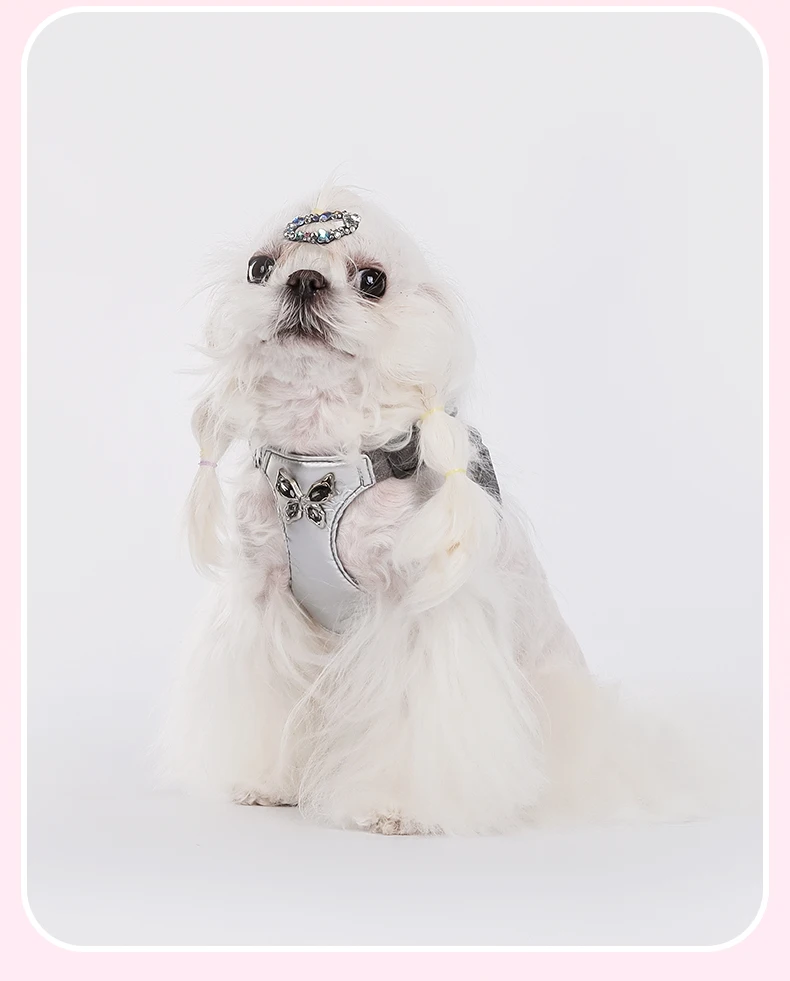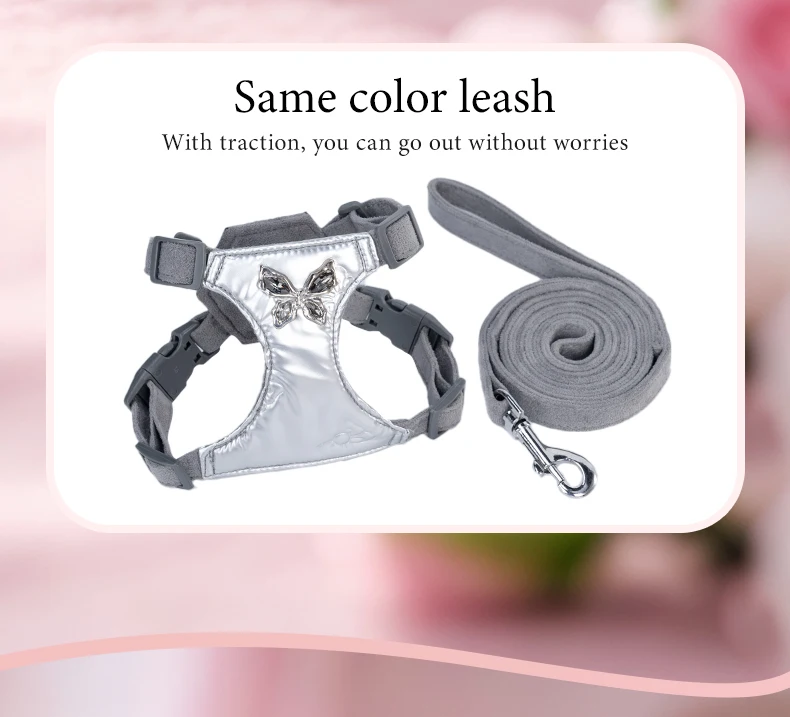 Fashion Dog Harness Leash Set Metal Bow Design - Soft No Pull Vest for Small Dogs Comfortable Walking Pet Gear