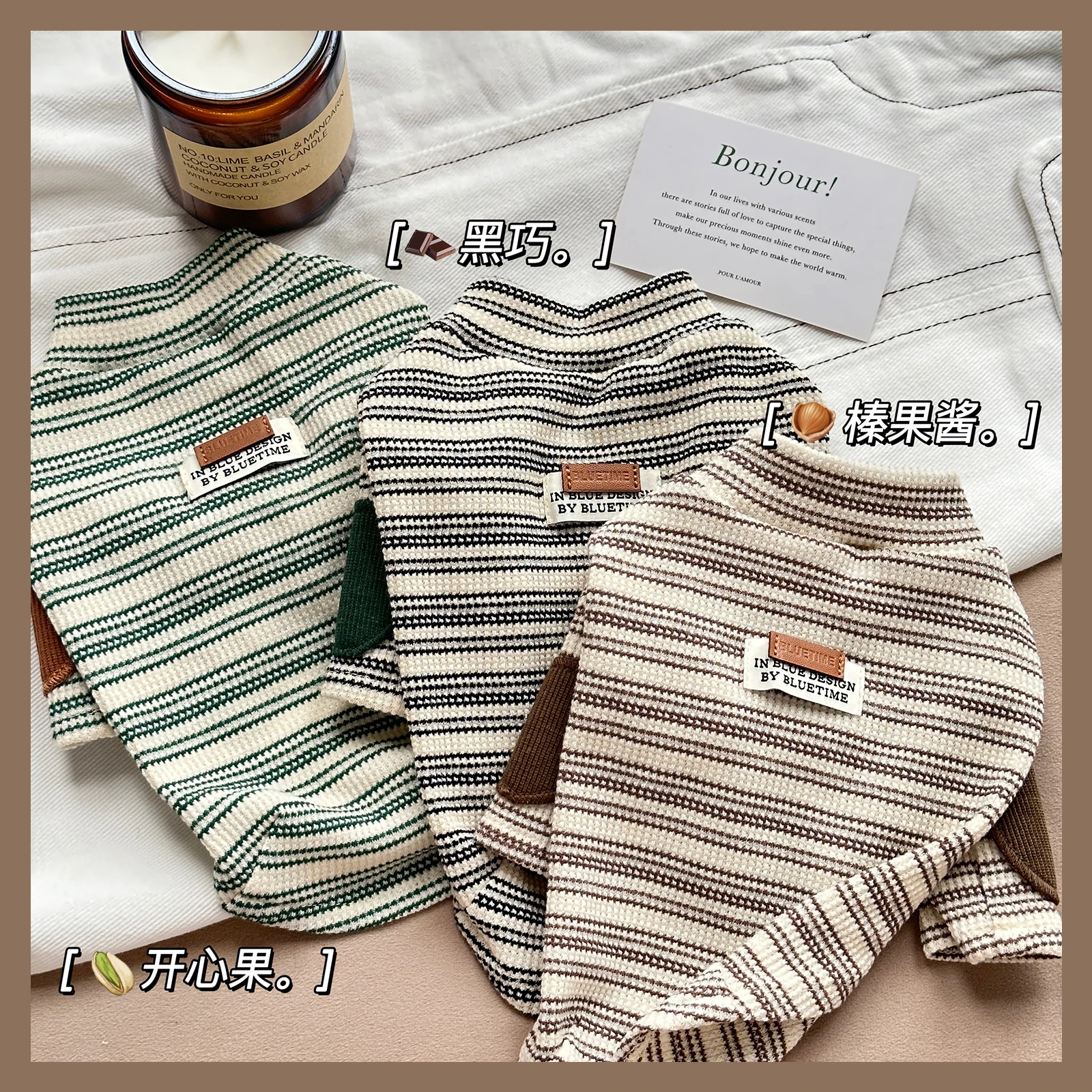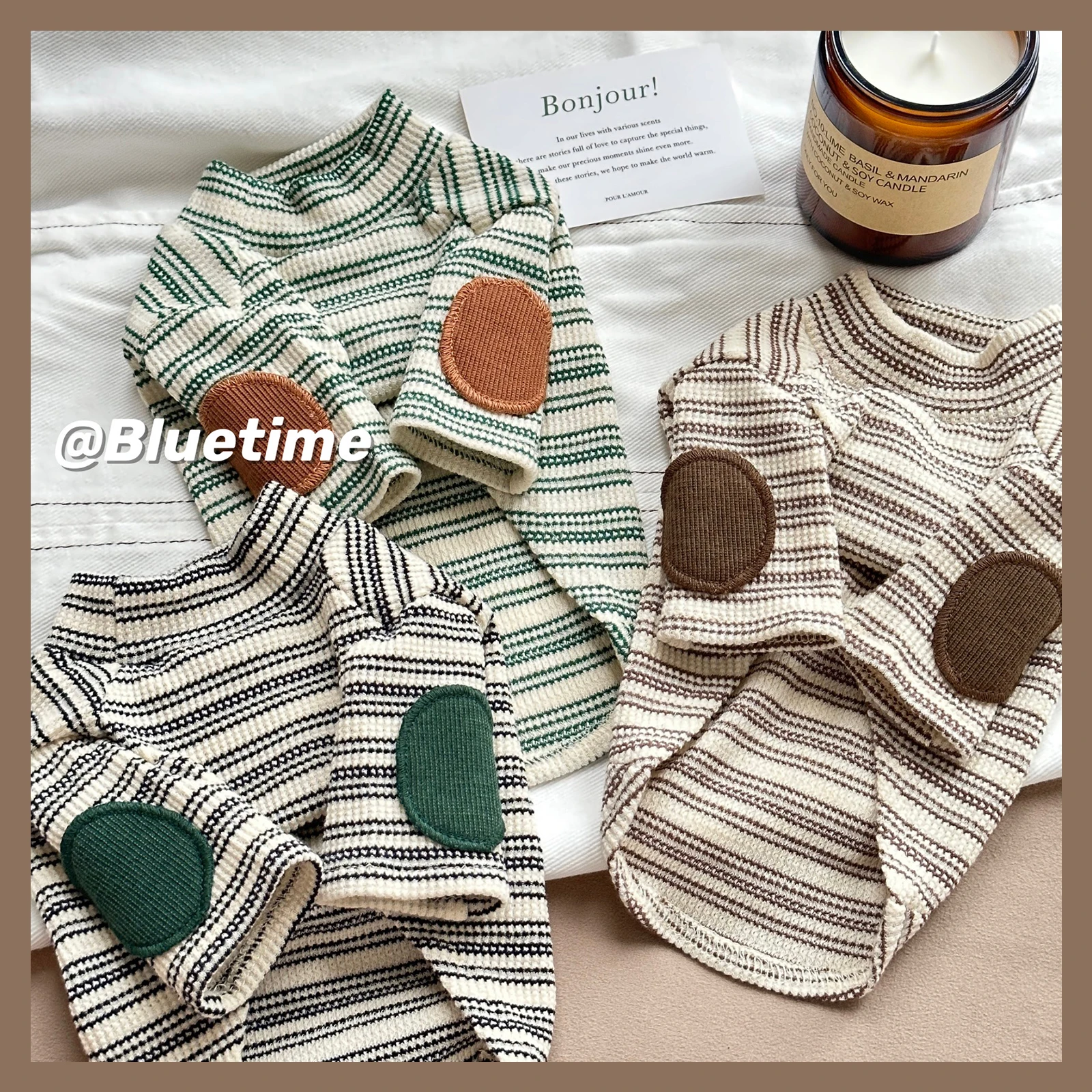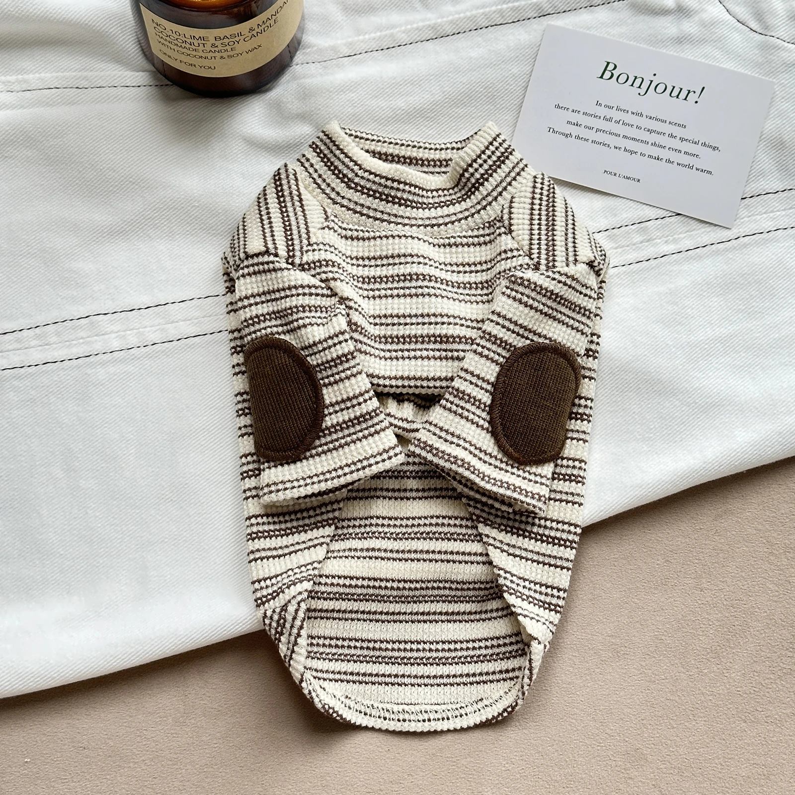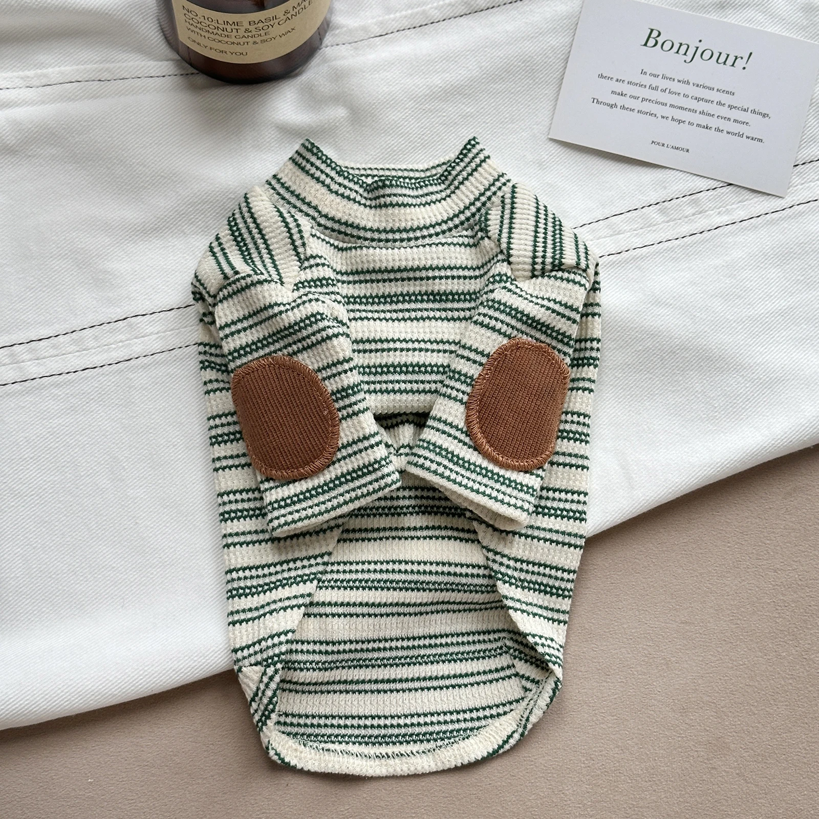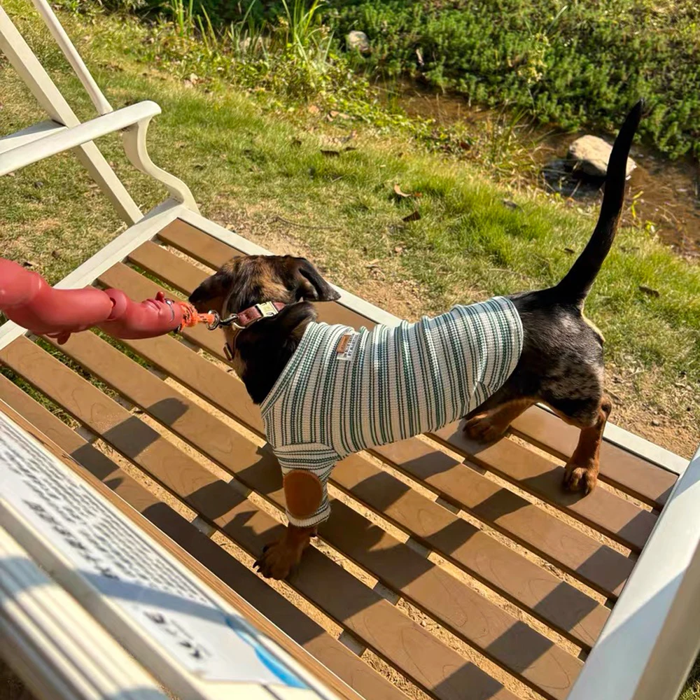 Fashion Striped Cotton 2-legged T-shirt for Wiener Dogs Warm Sleeveless Soft Pajamas for Sausage Dachshund Dogs in Autumn