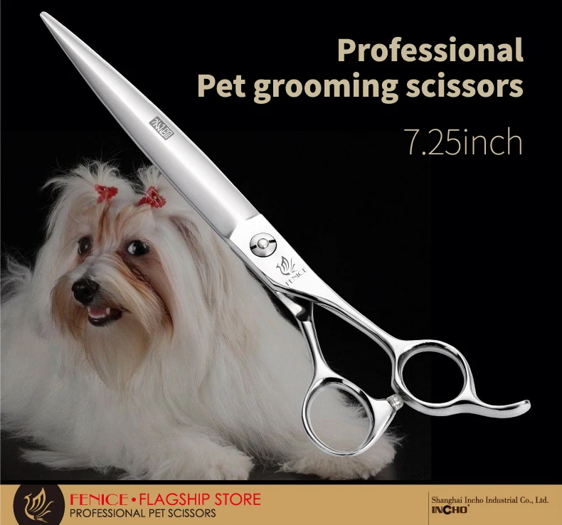 Fenice 반려동물 미용 가위, 전문 일본 440C 개 가위, 헤어 커팅 스트레이트 가위, 7.25 인치