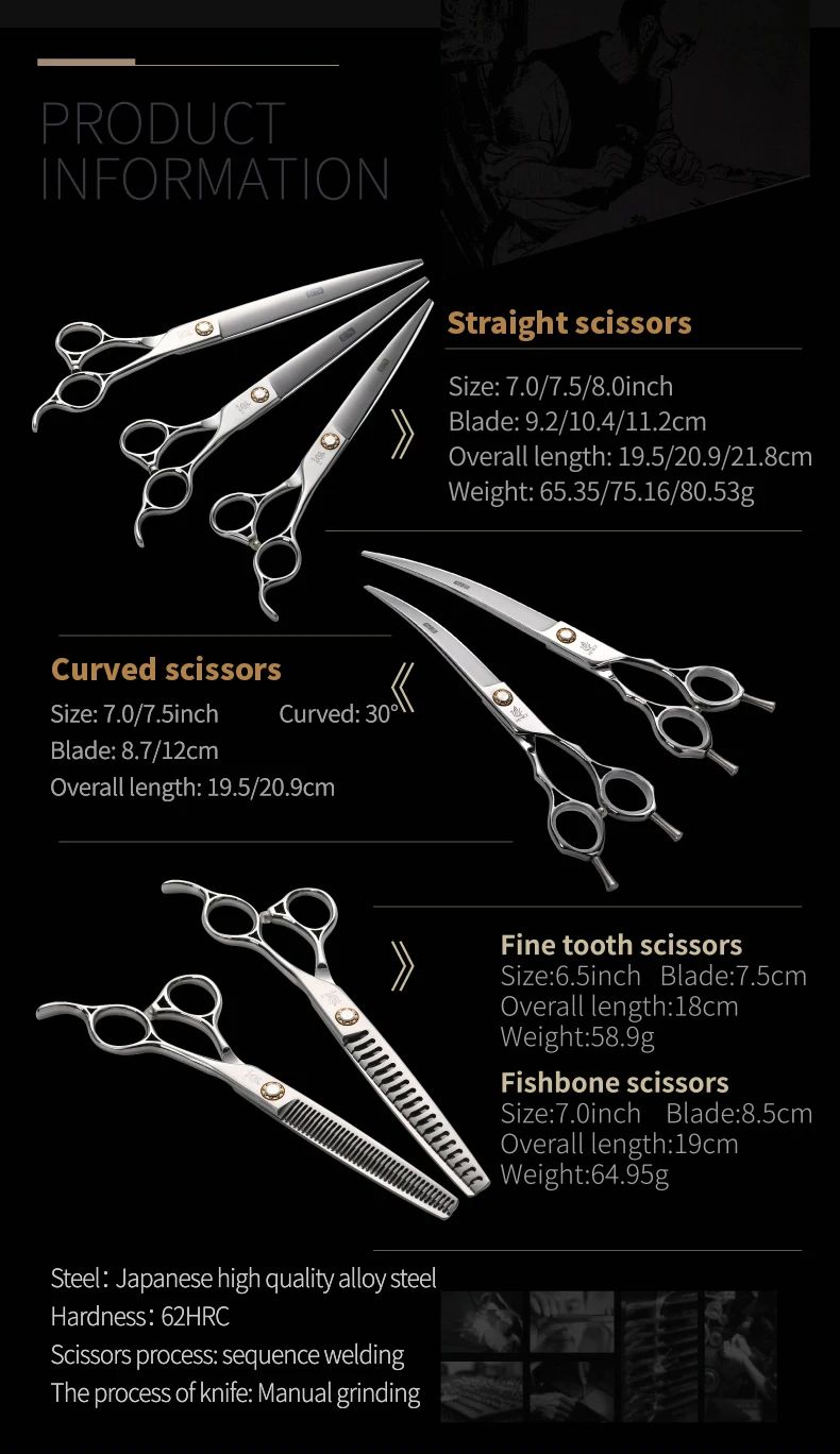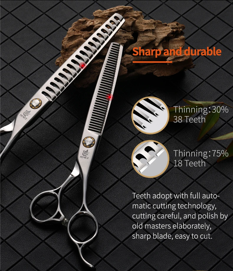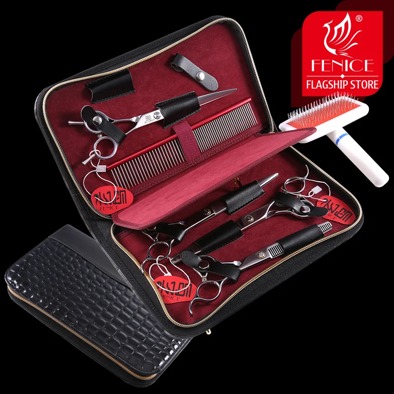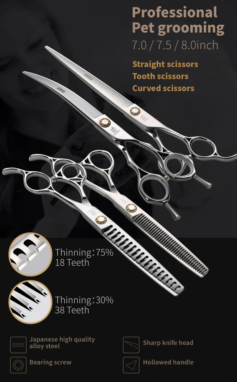 Fenice 6.5/7/7.5/8 inch Professional Pet Dogs Grooming Scissors Set Straight & Thinning & Curved Shears Set