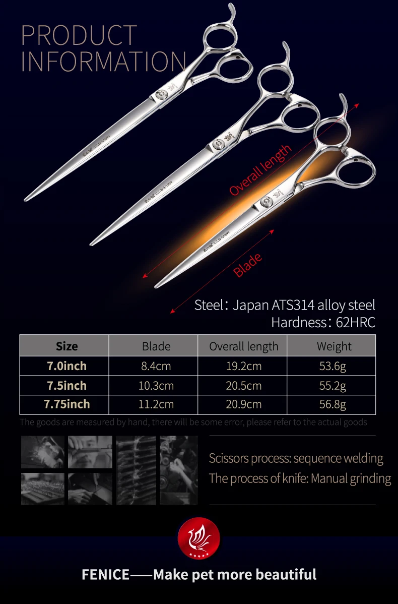 Fenice 7/7.5/7.75 pulgadas JP ATS314 Tijeras DE ASEO profesional de acero para perros Tijeras para mascotas Tijeras de corte Tijeras de aseo