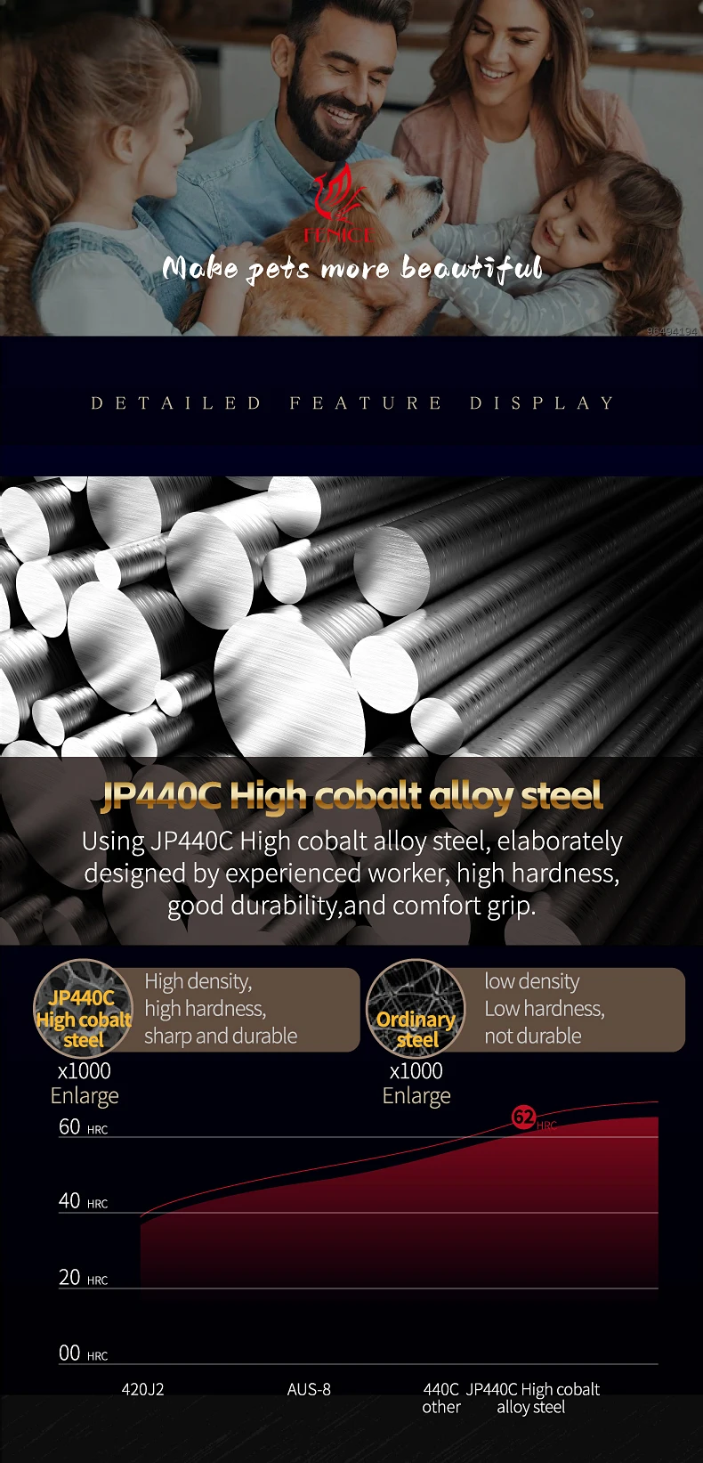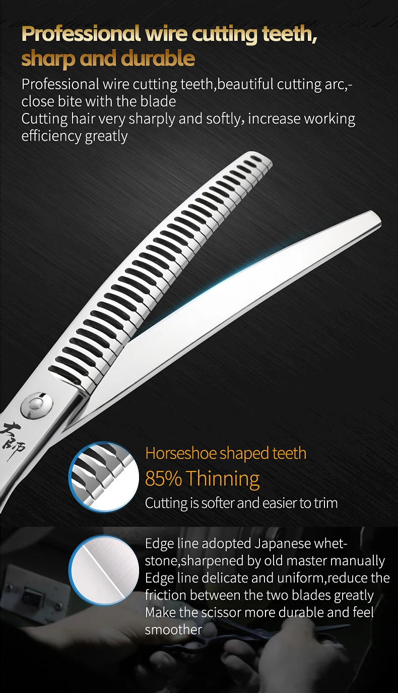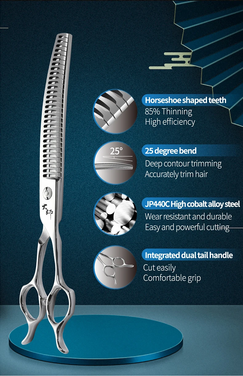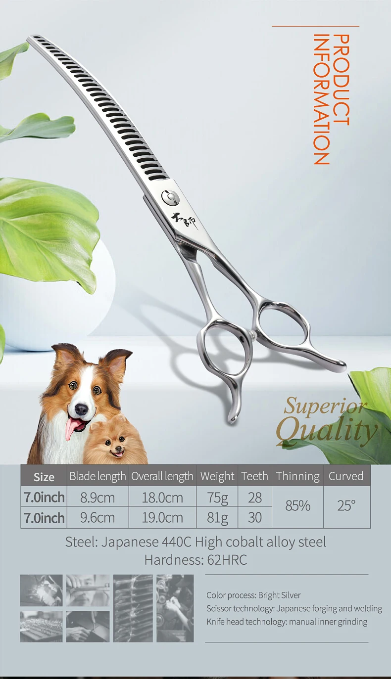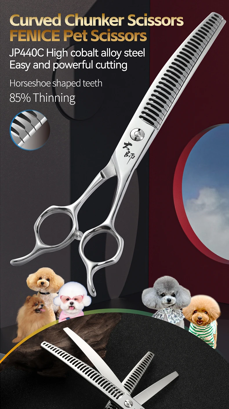 Fenice 7/7,5 pulgadas JP 440C tijeras profesionales de peluquería para perros de alta calidad tijeras curvas para recortar perros tijeras de belleza para mascotas