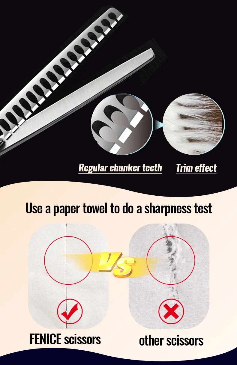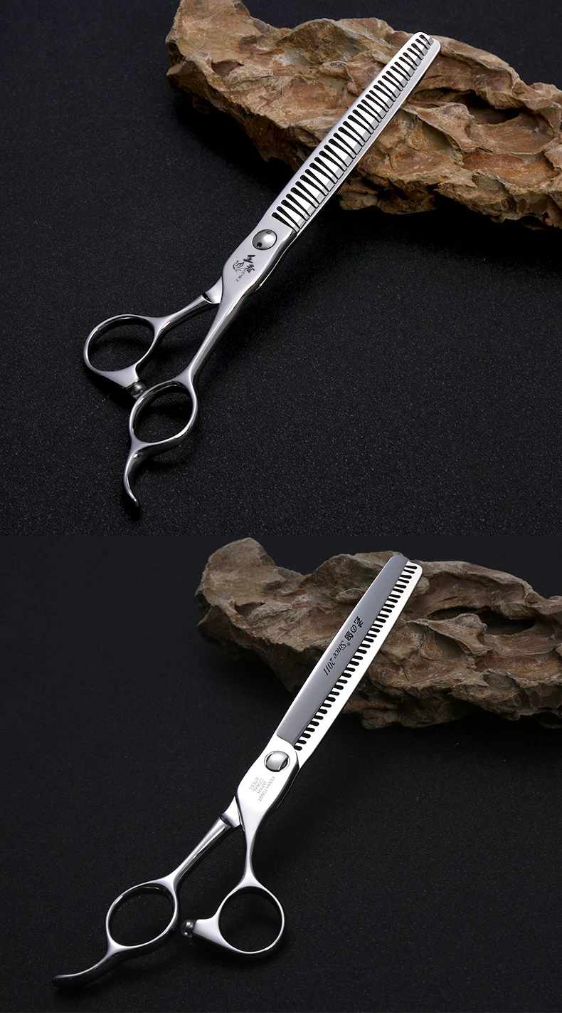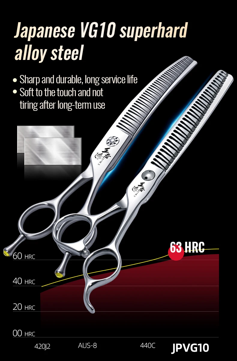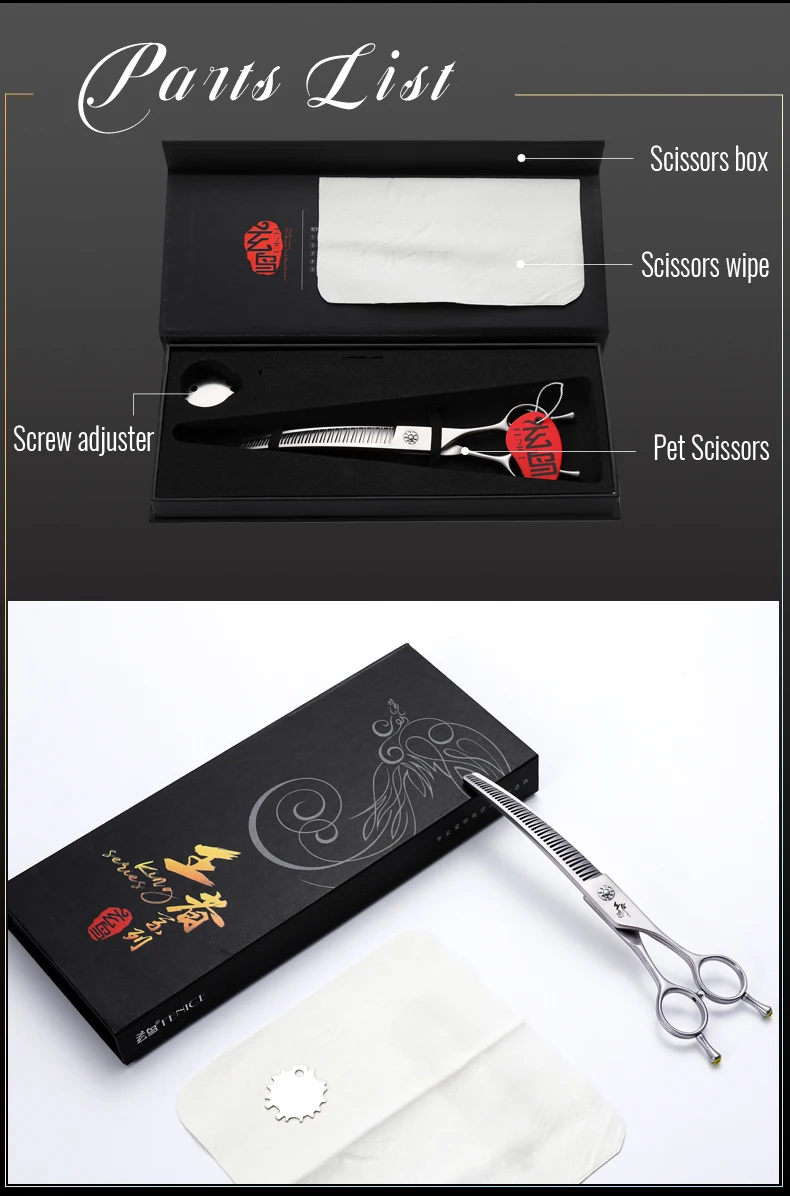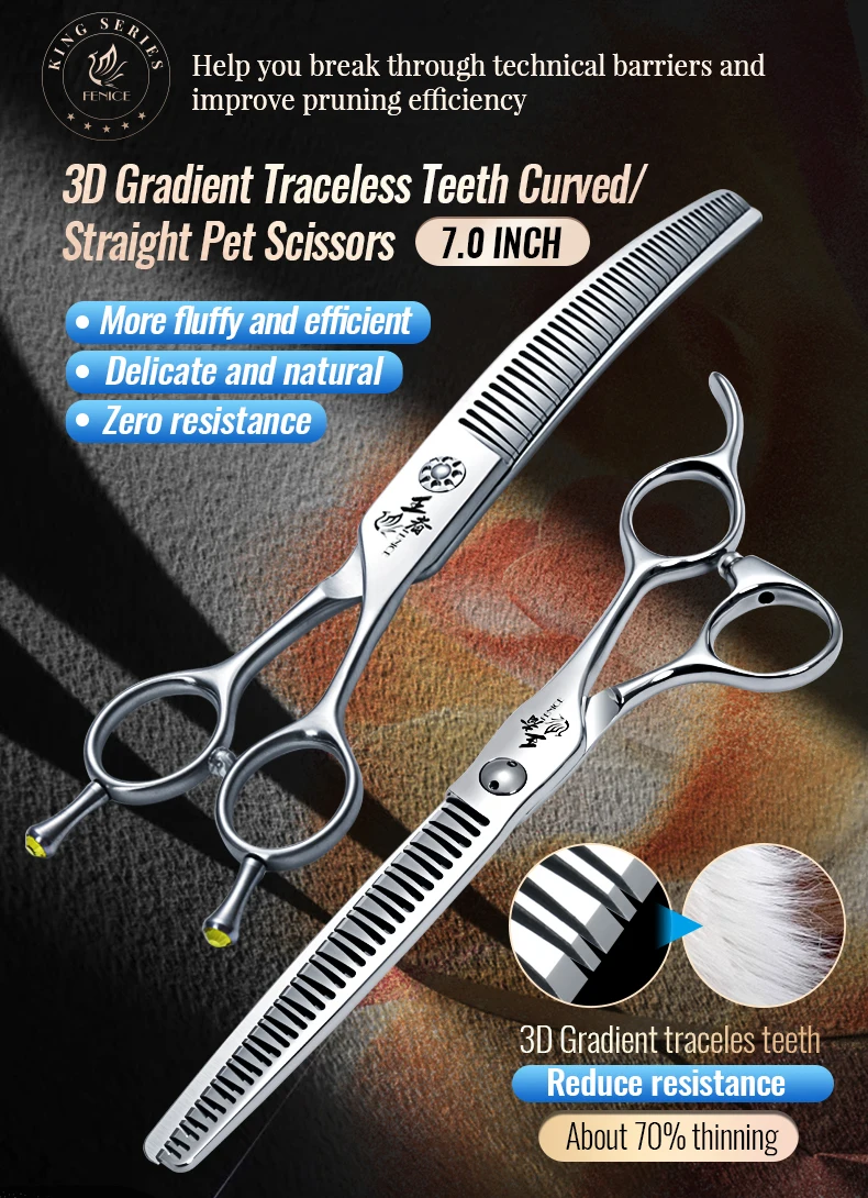 Fenice 7 pulgadas 3D gradiente sin rastro 34 dientes VG10 tijeras de acero para mascotas tijeras de peluquería para perros tornillos de rodamiento adelgazamiento 70%