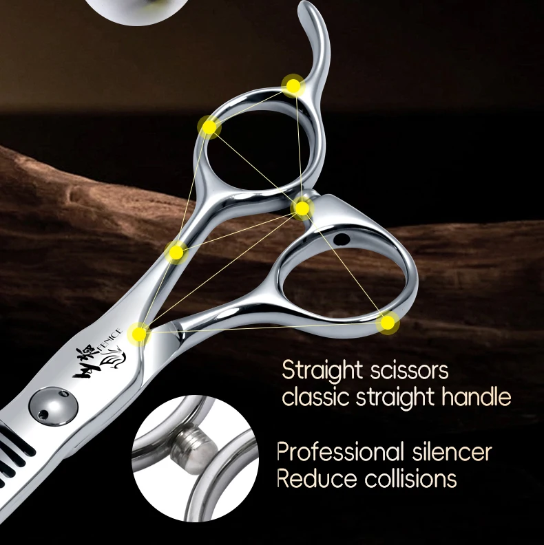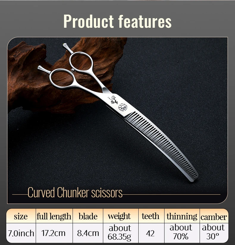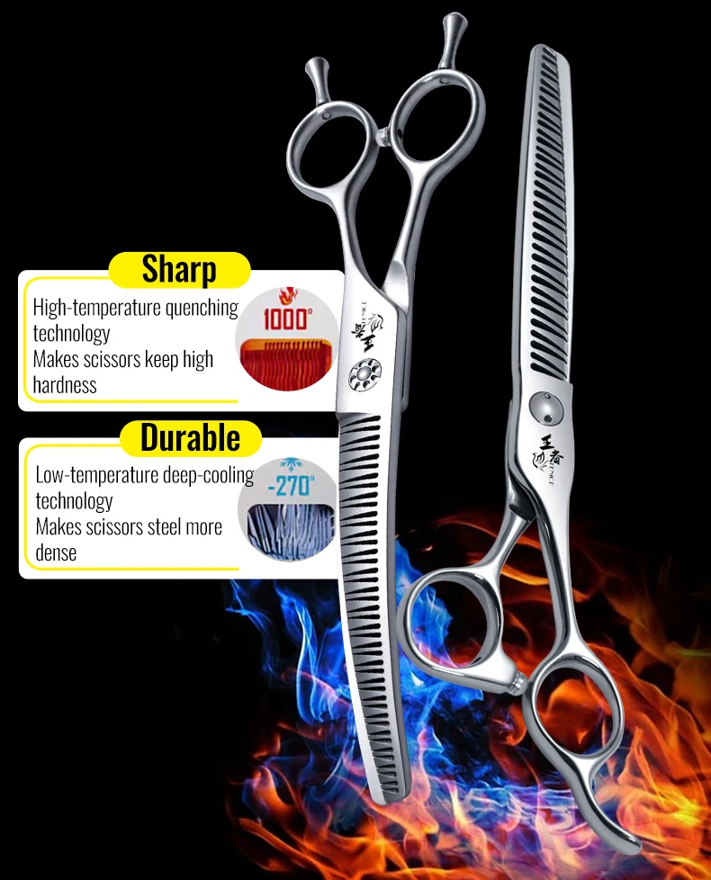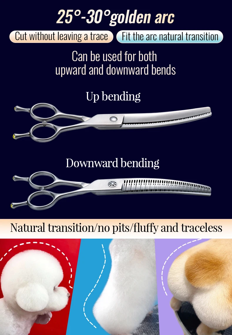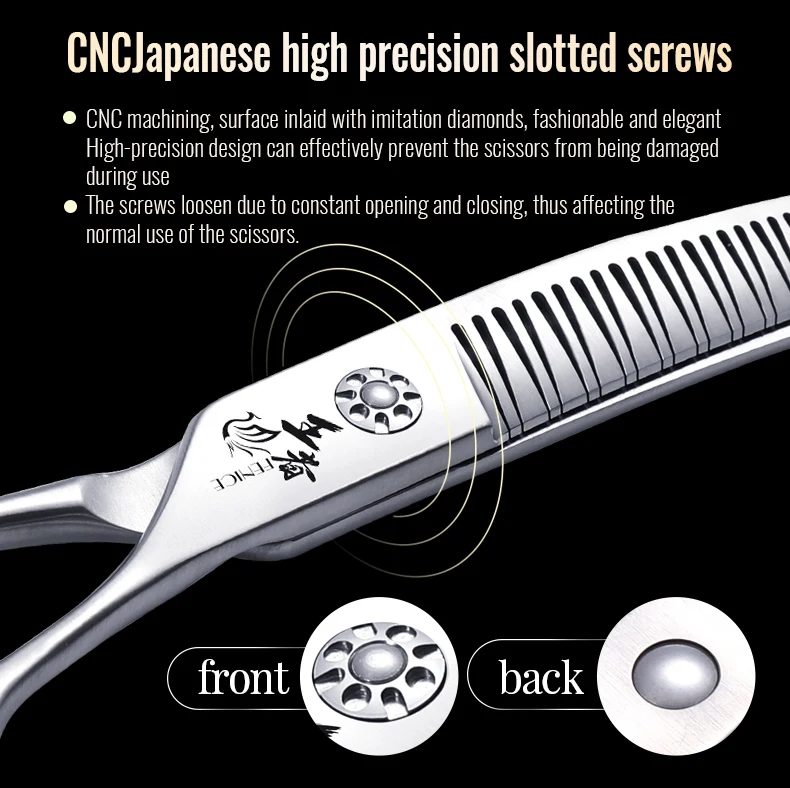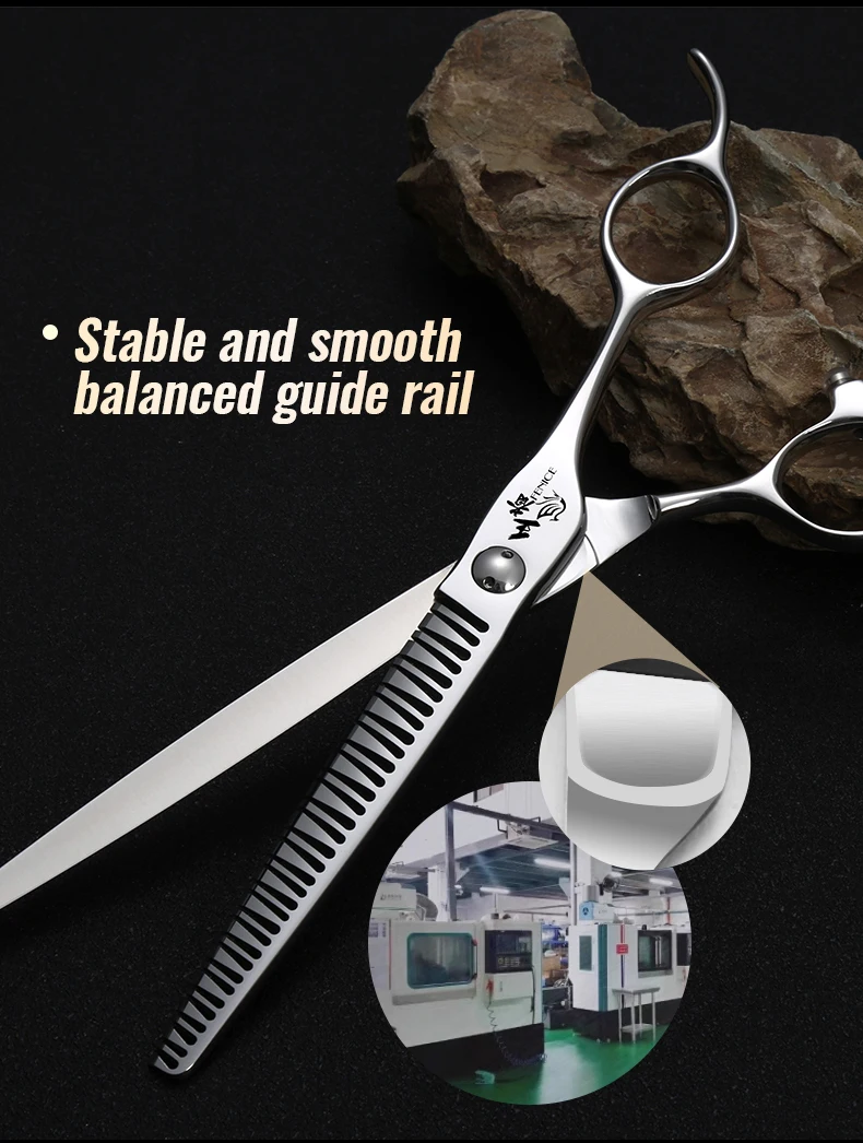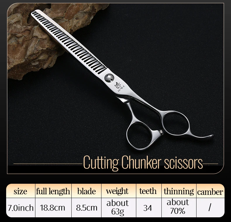 Fenice 7 pulgadas 3D gradiente sin rastro 34 dientes VG10 tijeras de acero para mascotas tijeras de peluquería para perros tornillos de rodamiento adelgazamiento 70%