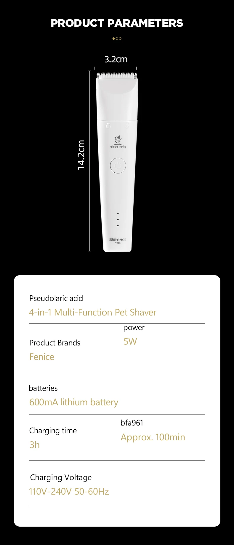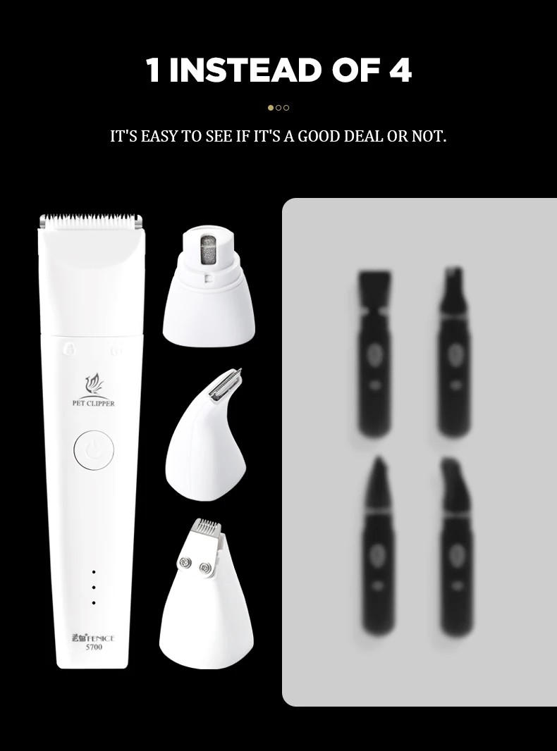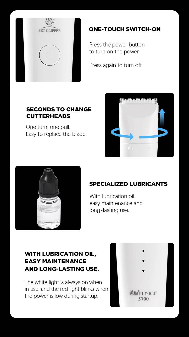 Fenice Recortadora de pelo eléctrica 4 en 1, cortadora de pelo para mascotas, recortadora de uñas, máquina cortadora profesional, herramienta de corte para perros