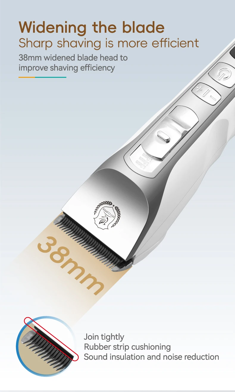 soy peluquera canina y compré está máquina, porque la mía se estropeó y digo por probar, pero acerté de llenó, está máquina es una maravilla,me ha sorprendido muchísimo,yo tengo máquinas que me han costado el doblé que está y no trabajan igual, vamos que yo la recomiendo, pele tres perros de agua con está máquina sin ningún problema, y solo se gastó la batería a la mitad, estoy muy contenta con ella, también compré las cuatro cuchillas de distintos tamaños.