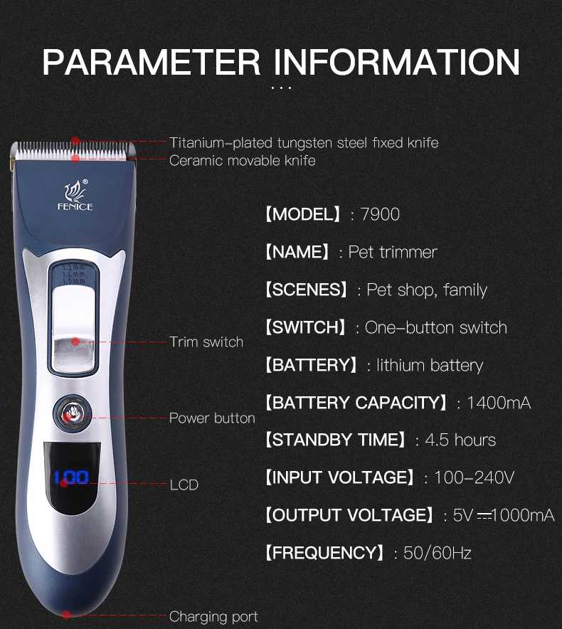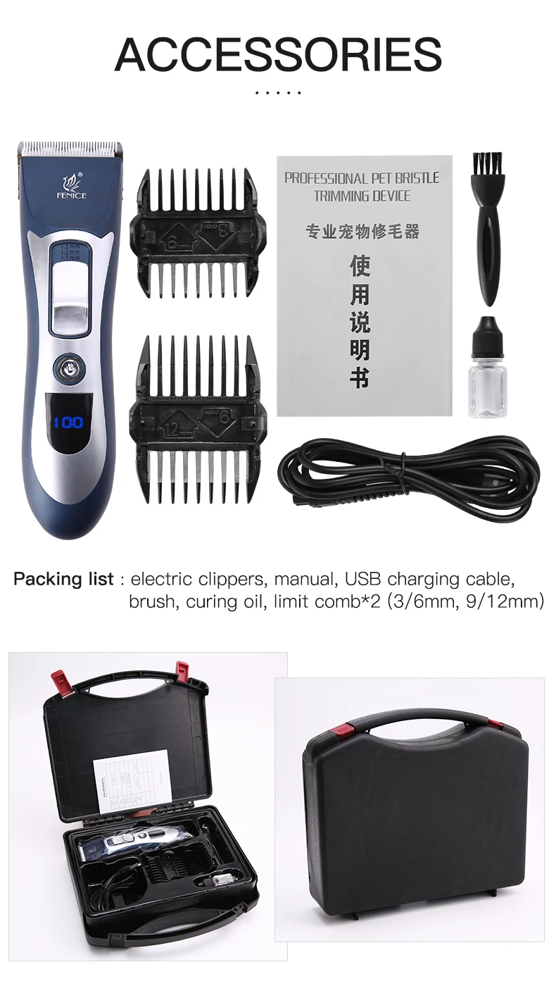 Fenice-cortapelos eléctrico para mascotas, Kit de aseo profesional recargable, recortadora de pelo para gatos y perros, juego de afeitadora, corte de pelo de animales