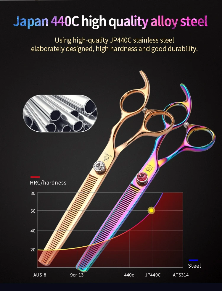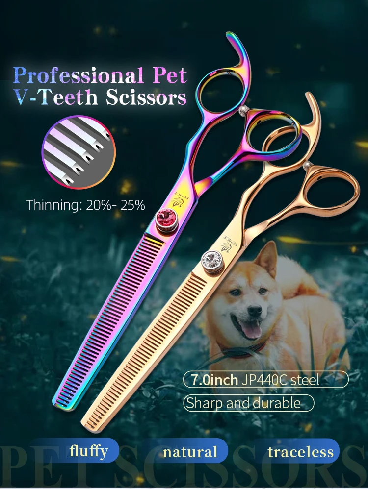 Fenice, tijeras profesionales para mascotas de 7 pulgadas, tijeras para el cuidado de perros, tijeras de adelgazamiento, tasa de adelgazamiento de aproximadamente 20-25%