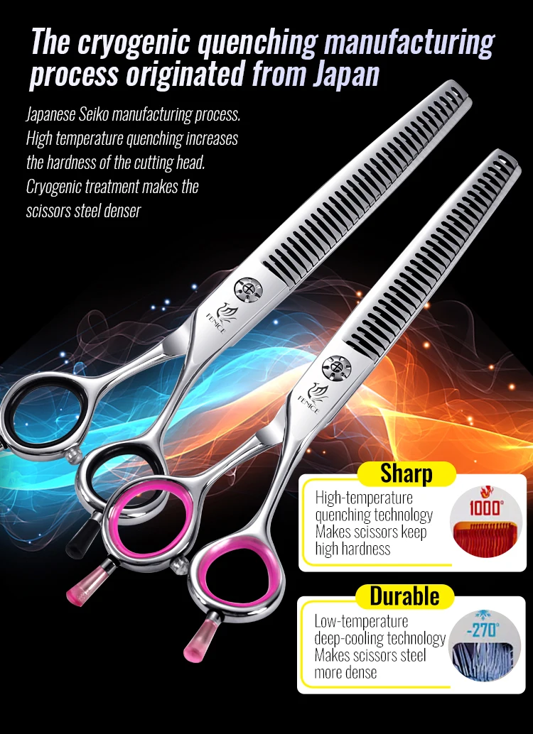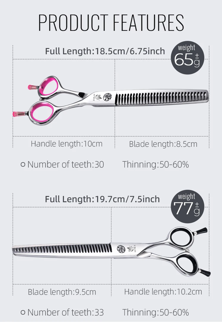 Fenice Japón 440C acero inoxidable 6,75/7 pulgadas tijeras de aseo para perros tijeras de adelgazamiento para perros tasa de adelgazamiento 50-6%