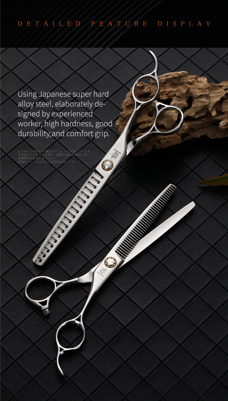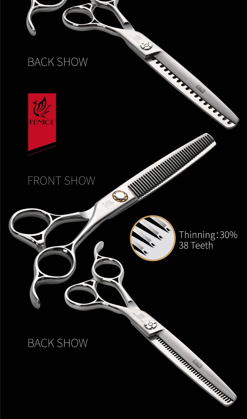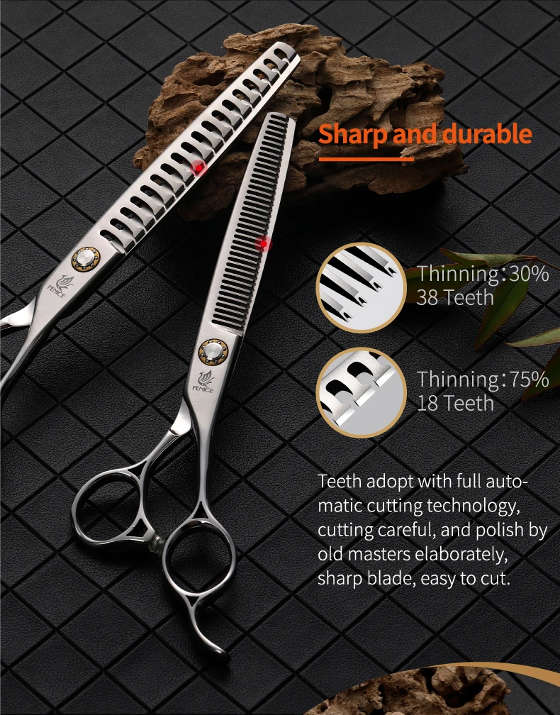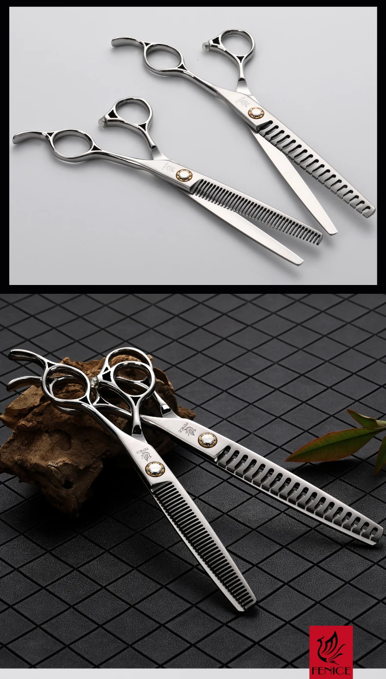 Fenice JP 440C tijeras de peluquería para mascotas tornillos de rodamiento de 6,5/7 pulgadas tijeras de adelgazamiento para herramientas profesionales de peluquería canina 30/75% de velocidad