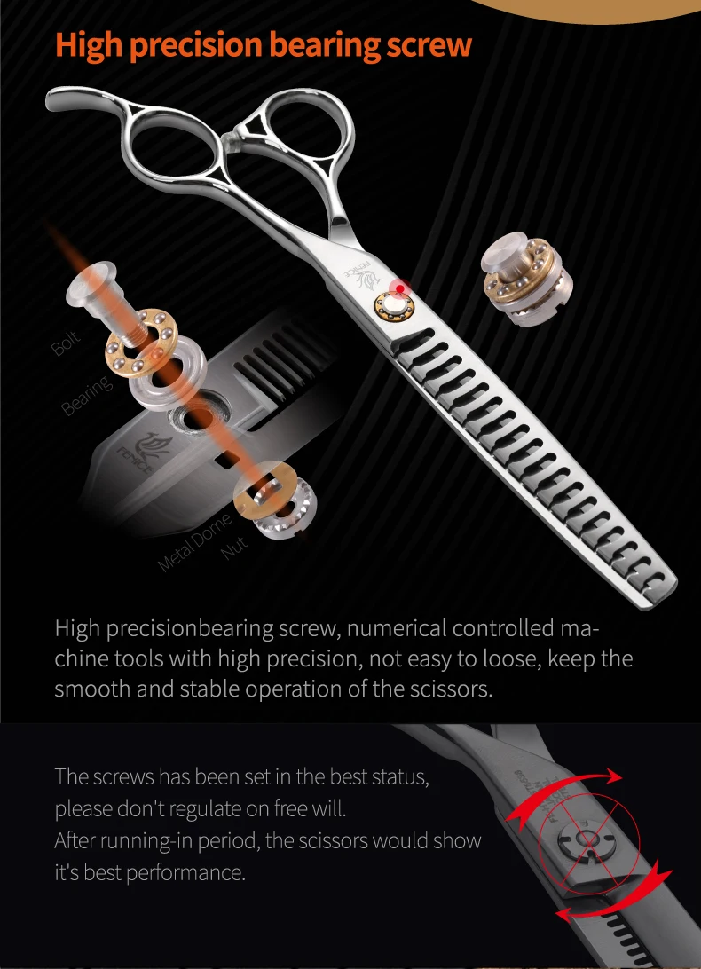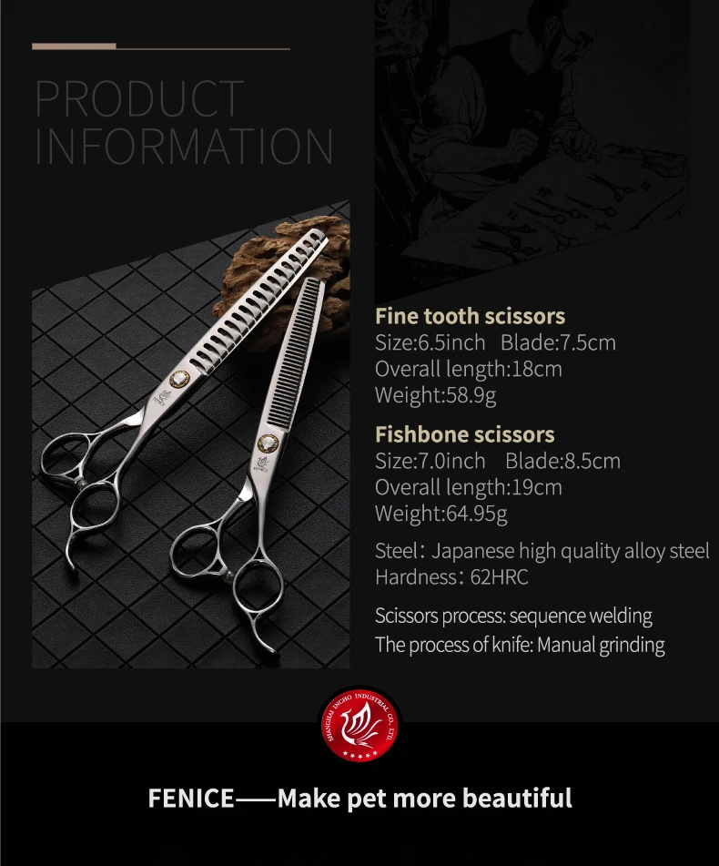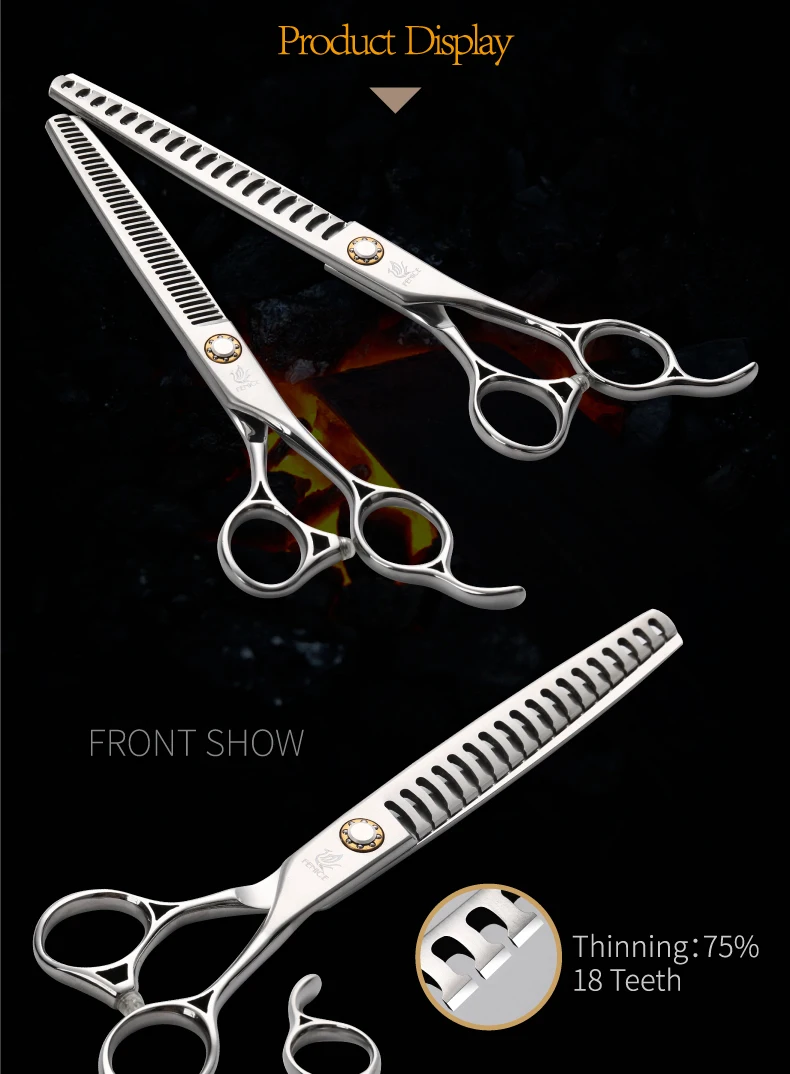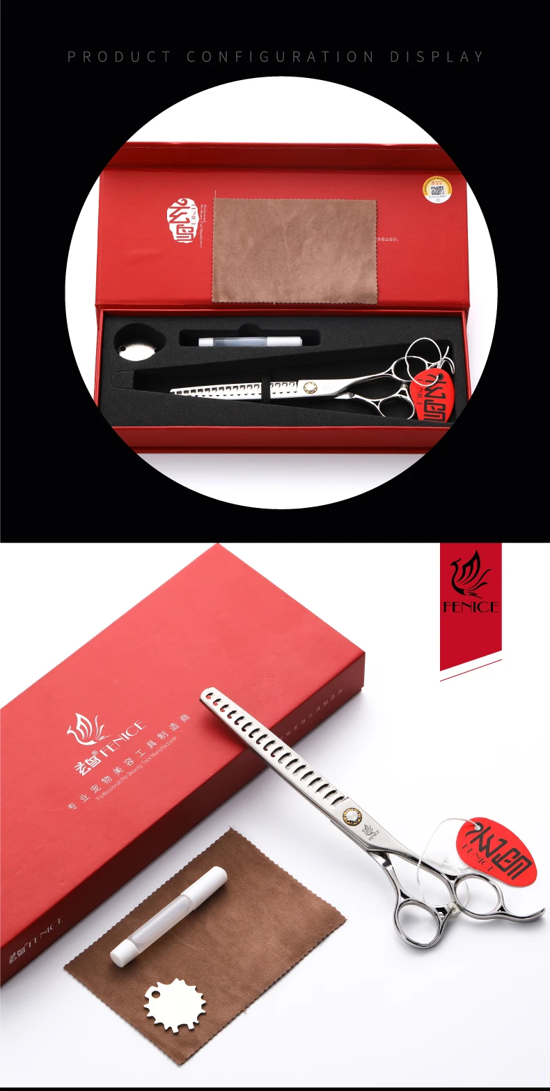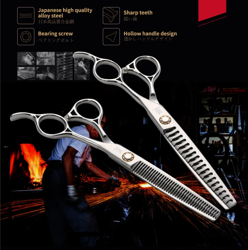 Fenice JP 440C tijeras de peluquería para mascotas tornillos de rodamiento de 6,5/7 pulgadas tijeras de adelgazamiento para herramientas profesionales de peluquería canina 30/75% de velocidad