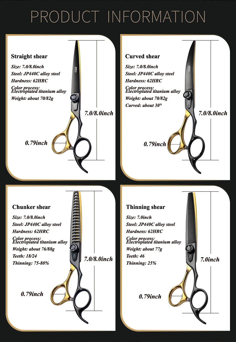 Excelentes! No soy profesional pero corto el pelo de mi caniche gigante. Enorme diferencia con las tijeras que tenía antes. Bien afiladas y de calidad. Juego muy recomendable, con estuche y regalo
