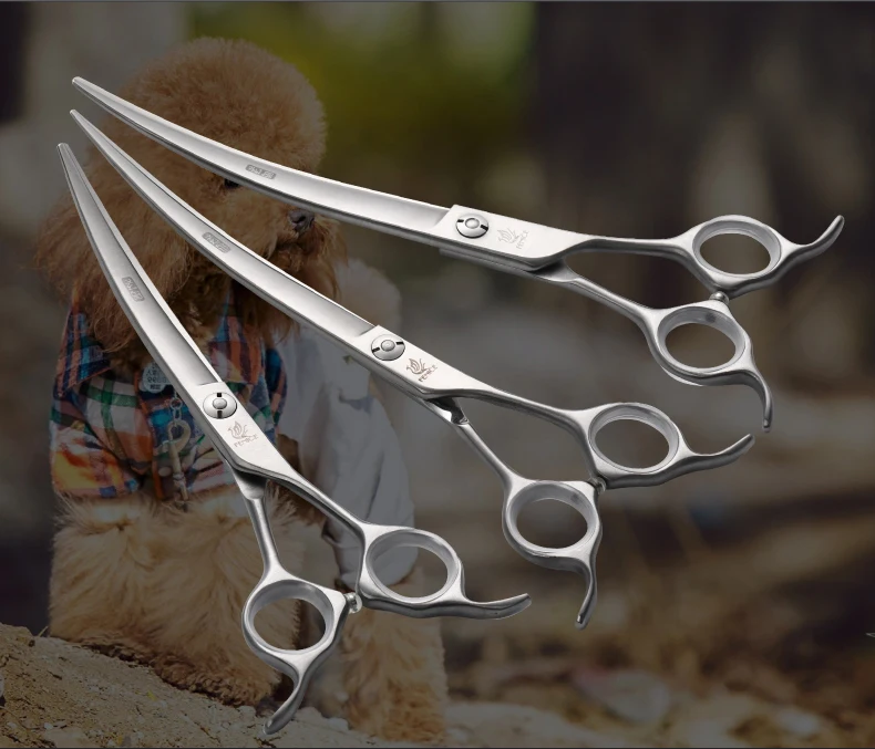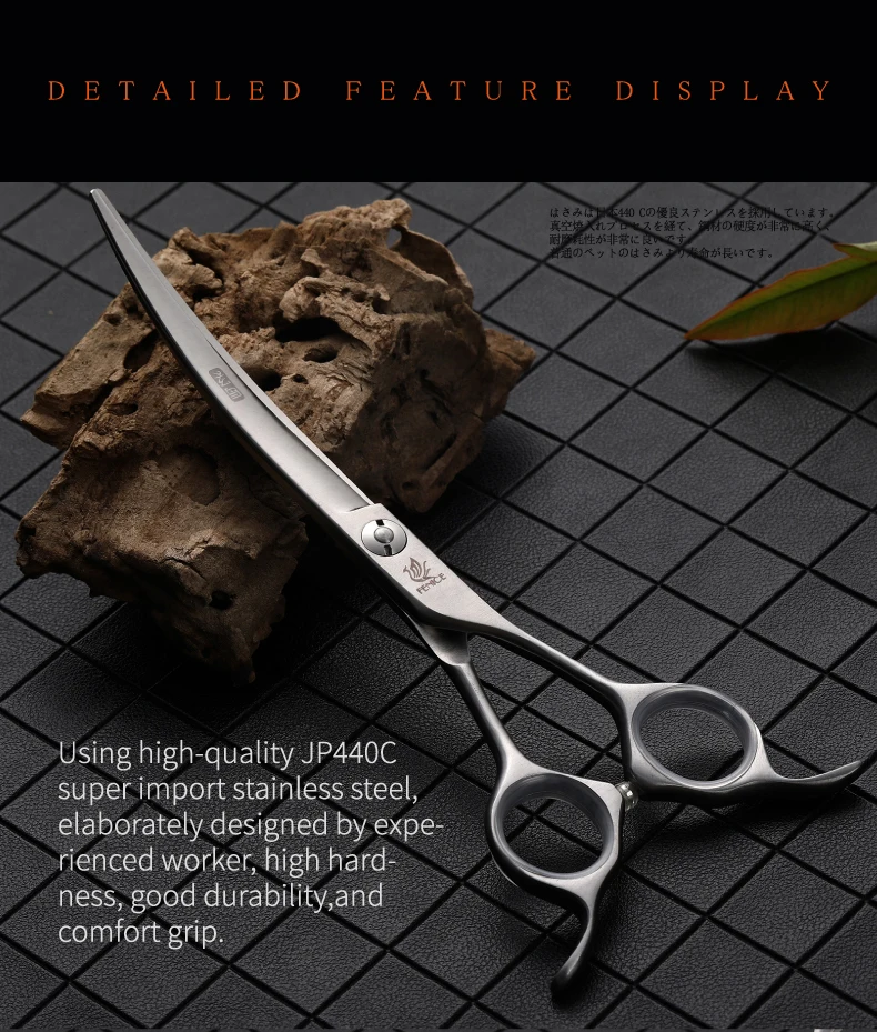 Fenice JP440C acero 6.5/7/7.5 pulgadas tijeras para pelar perros y mascotas tijeras curvas arriba abajo tijeras para cortar pelo de mascotas herramientas