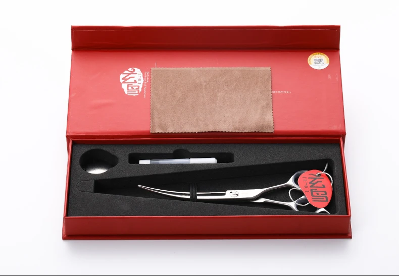 Fenice mano izquierda derecha 6,5/7/7.5 pulgadas perros de compañía tijeras para pelar tijeras curvas arriba abajo tijeras para cortar pelo de mascotas herramientas