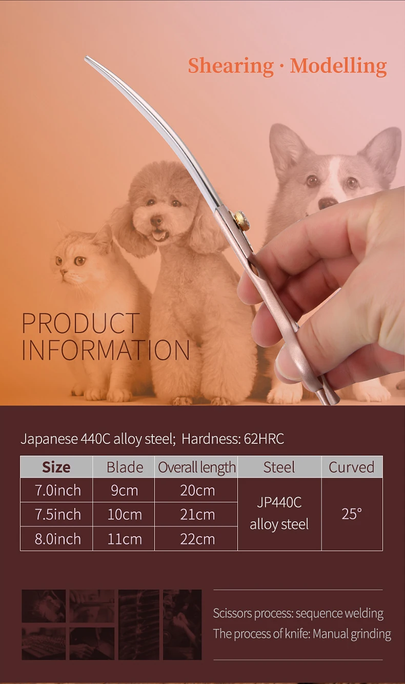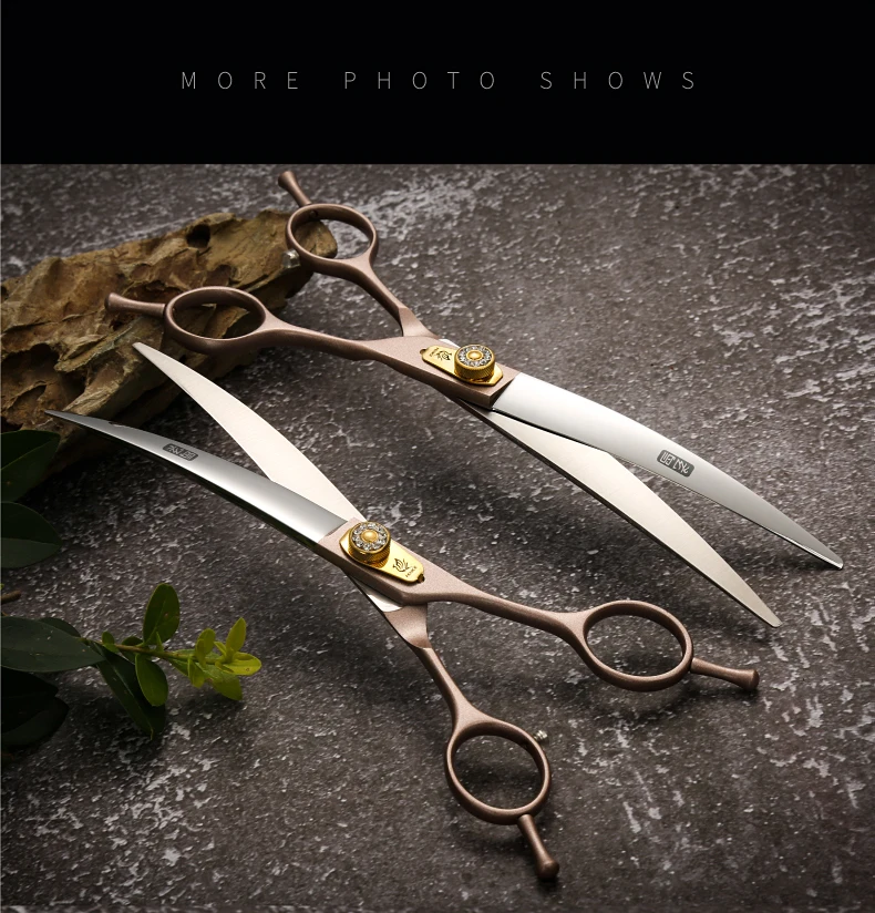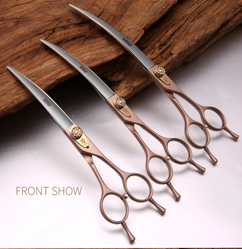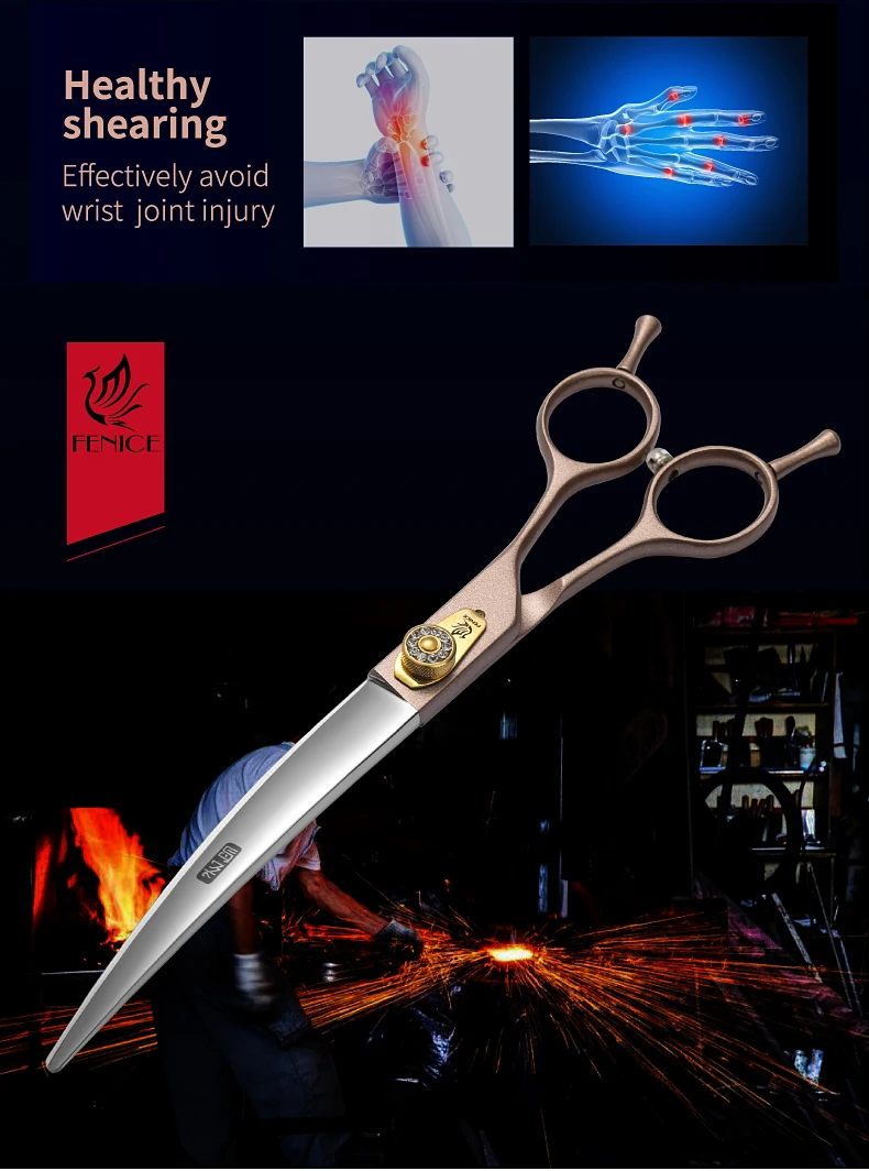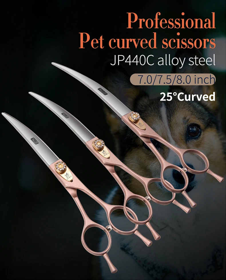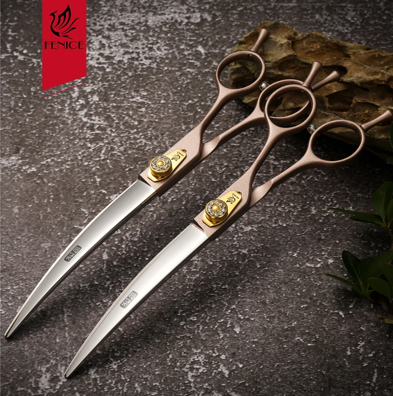 Fenice JP440C tijeras de acero para perros, tijeras de cuidado para mascotas de 7/7,5/8 pulgadas, tijeras de corte de pelo curvo para perros, peluquero profesional