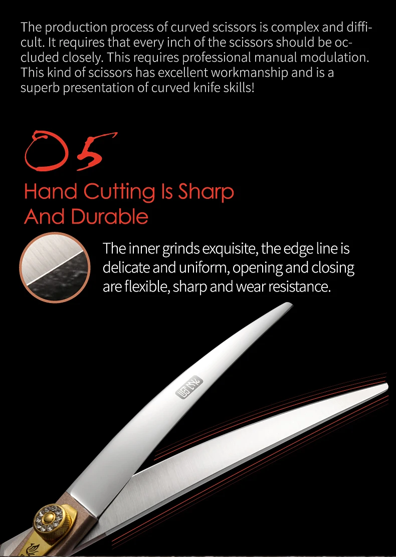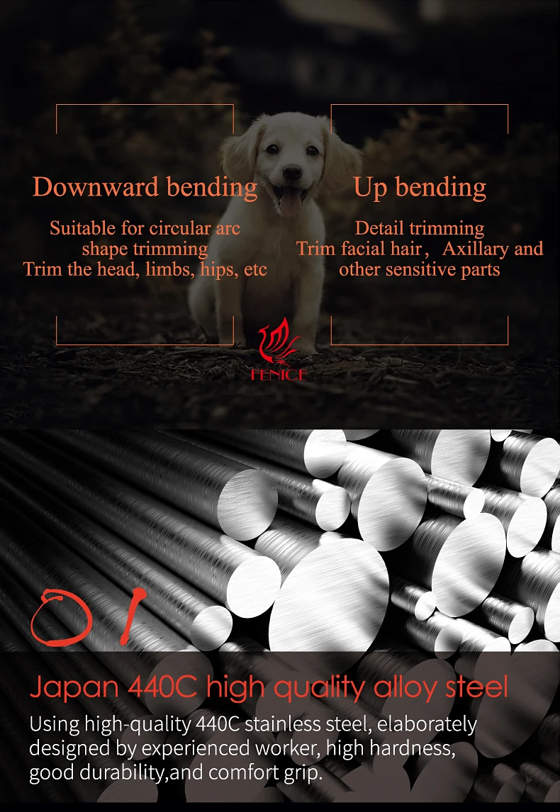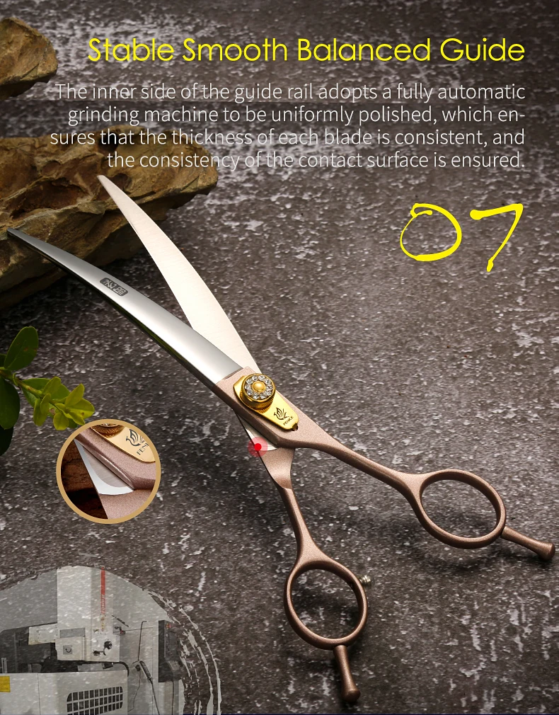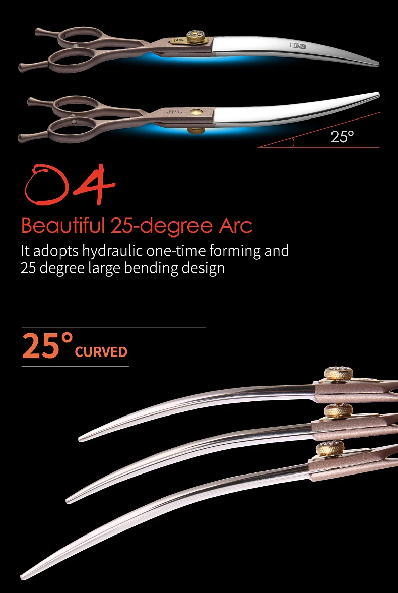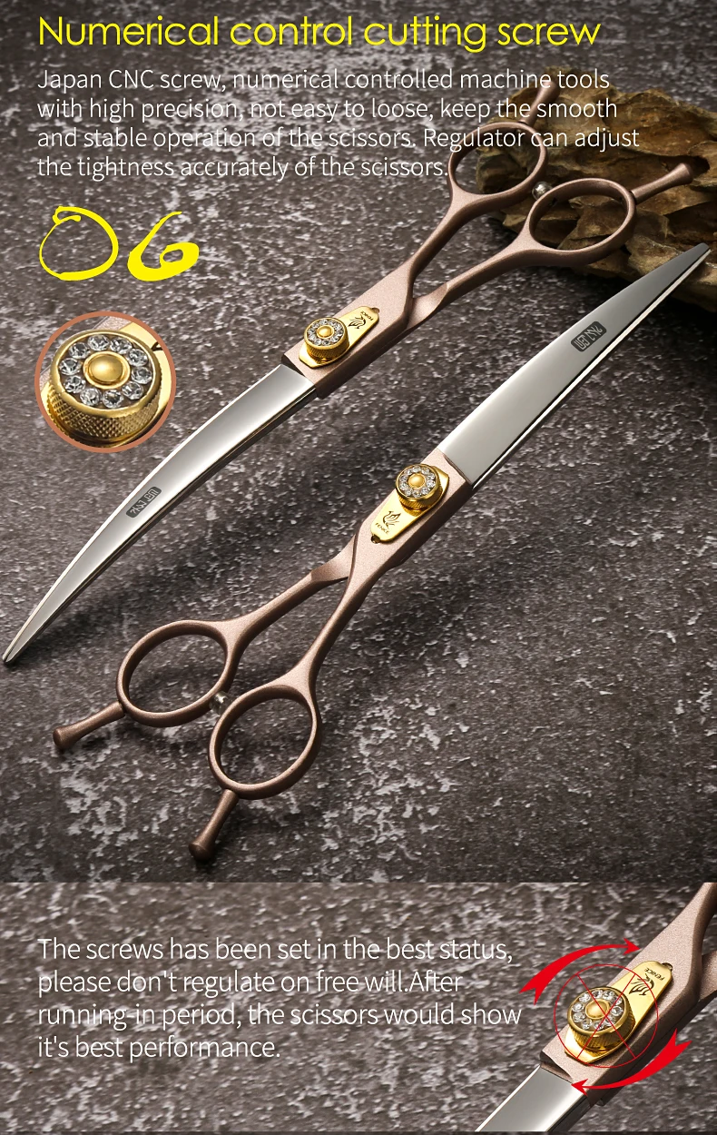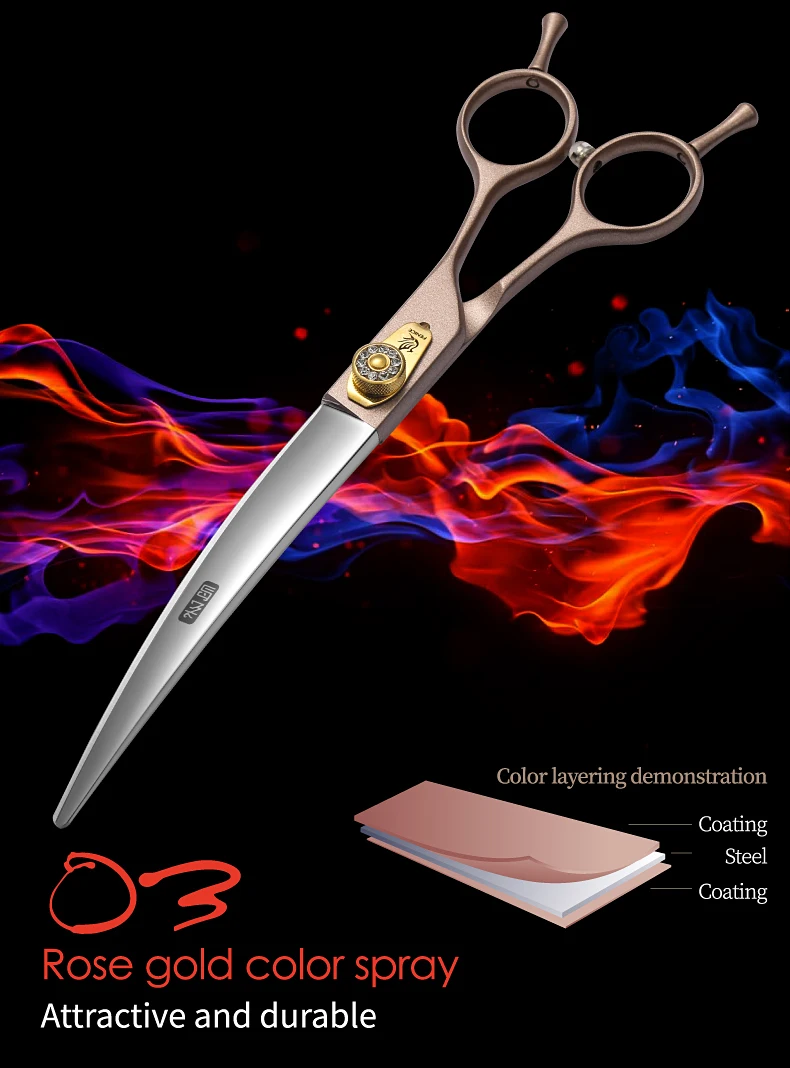 Fenice JP440C tijeras de acero para perros, tijeras de cuidado para mascotas de 7/7,5/8 pulgadas, tijeras de corte de pelo curvo para perros, peluquero profesional