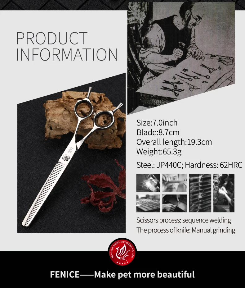 Fenice tijeras de peluquería para perros de 7 pulgadas Bichon Teddy tijeras para perros tijeras de adelgazamiento de dientes sin marcas para perros productos pesuuplies