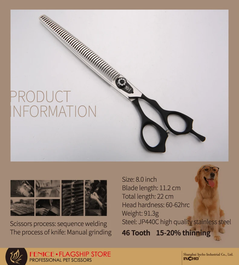 Fenice JP440c tijeras profesionales de acero para el cuidado de mascotas de 7/7,5 pulgadas para perros tijeras de adelgazamiento