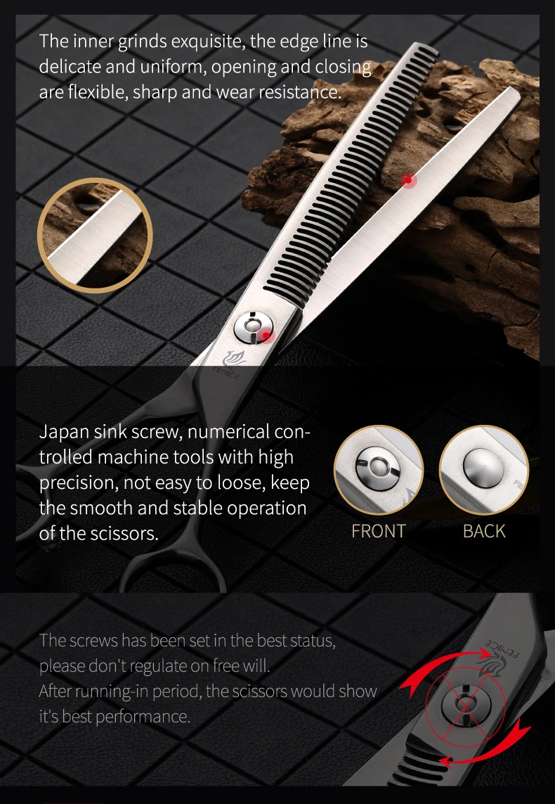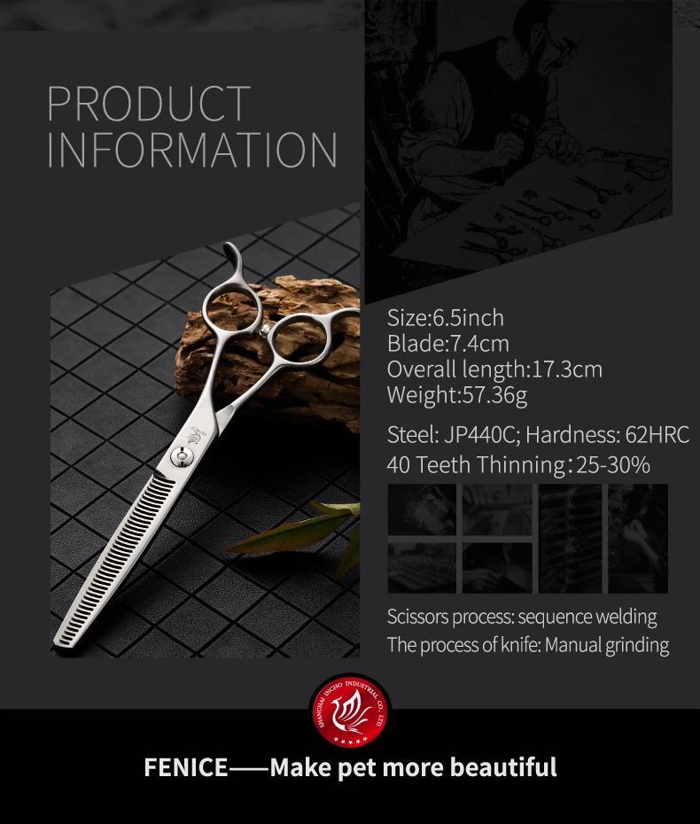 Fenice JP440C tijeras profesionales de aseo para perros de 6,5 pulgadas tijeras de adelgazamiento para mascotas tijeras de corte de pelo de belleza para perros