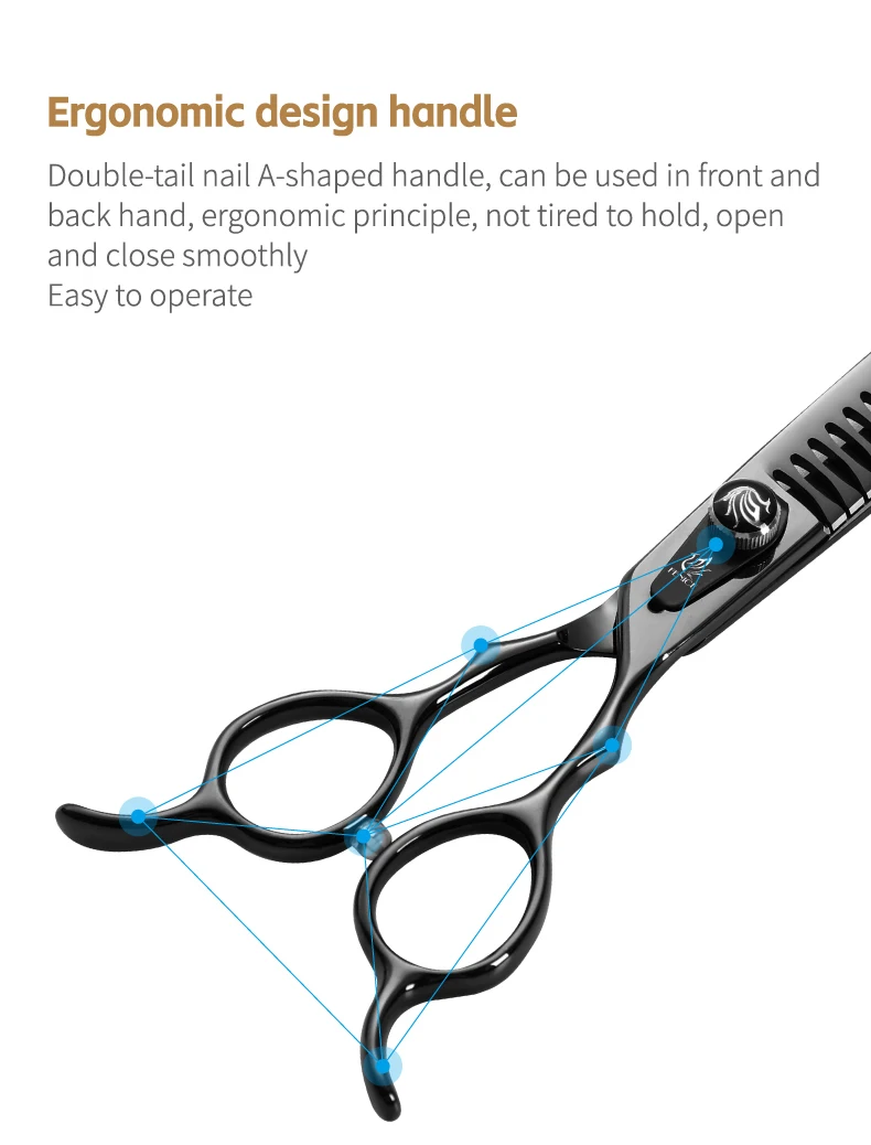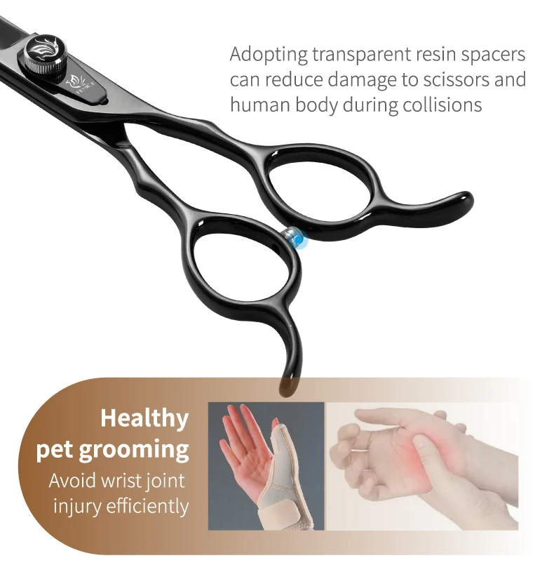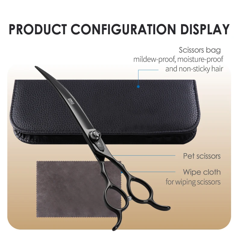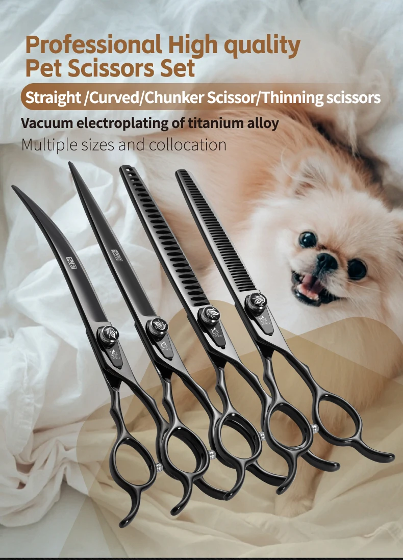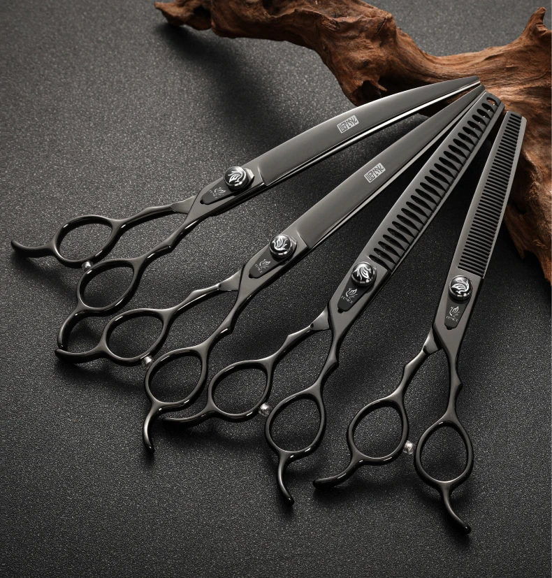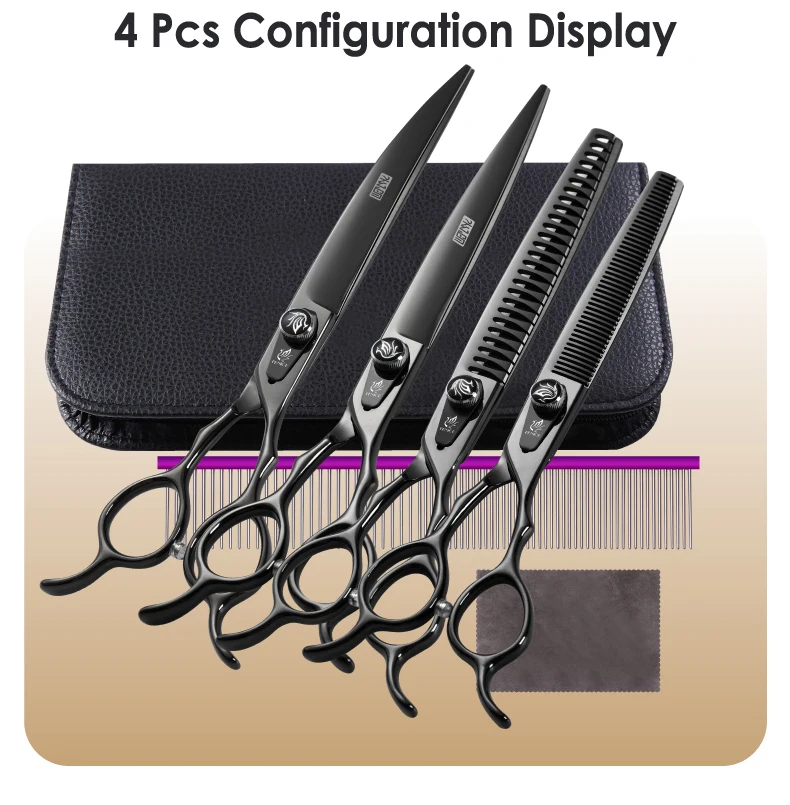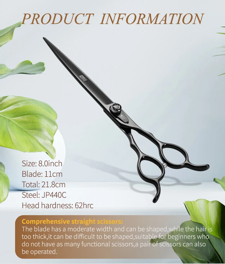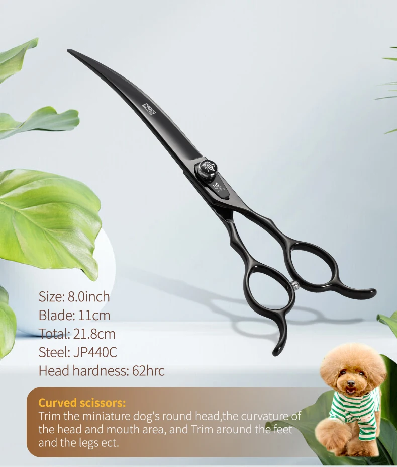 Fenice JP440C tijeras profesionales de peluquería canina negra de acero, tijeras rectas más delgadas y curvas para el cuidado de mascotas