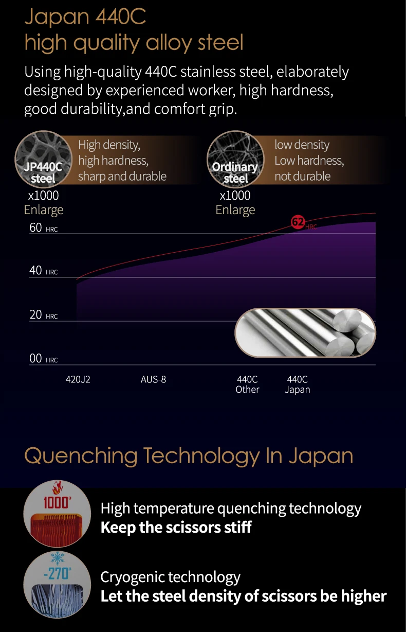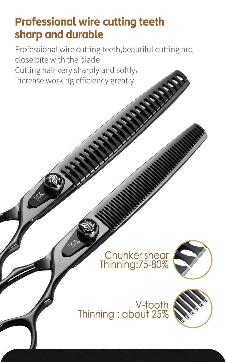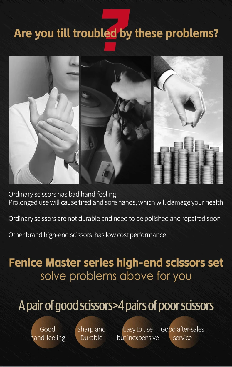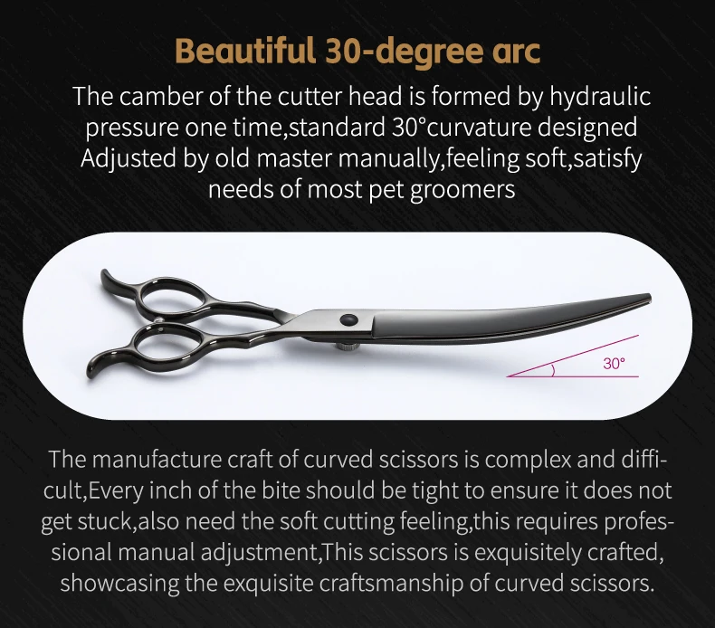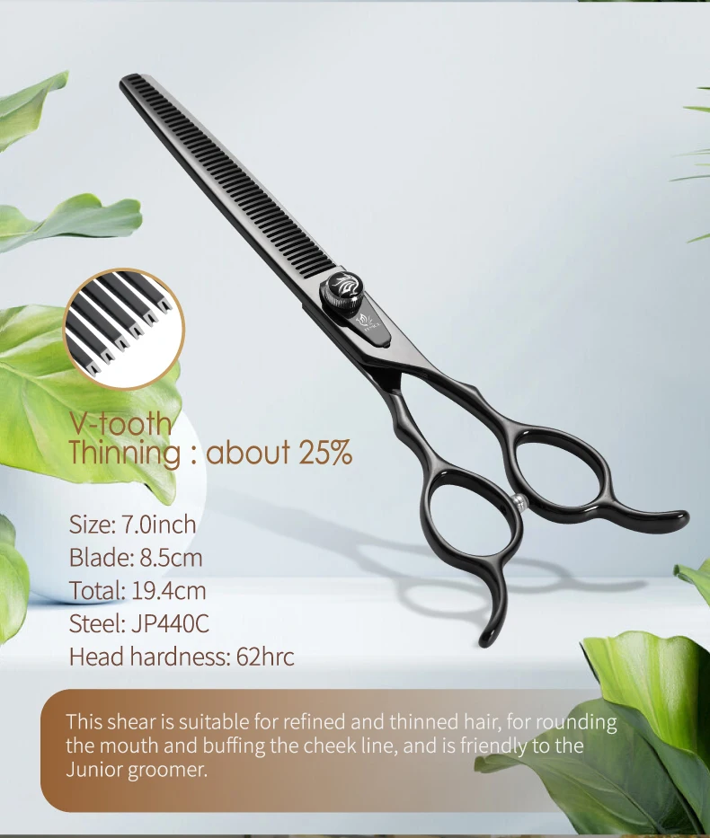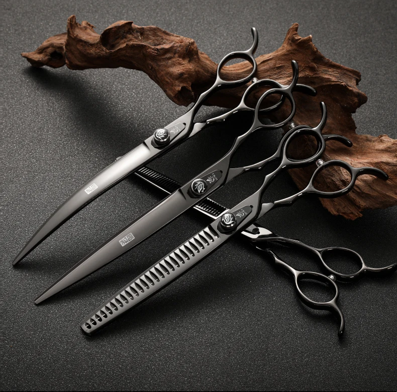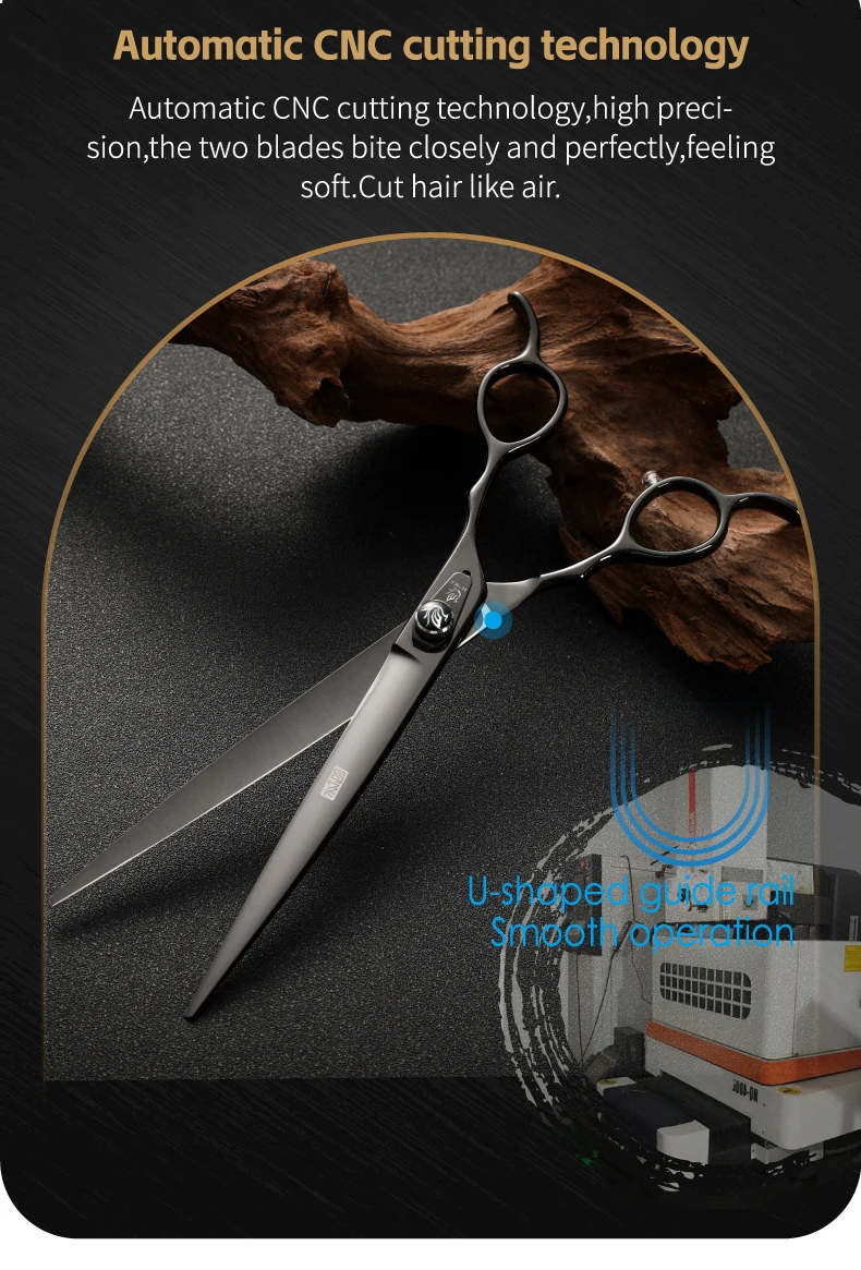 Fenice JP440C tijeras profesionales de peluquería canina negra de acero, tijeras rectas más delgadas y curvas para el cuidado de mascotas