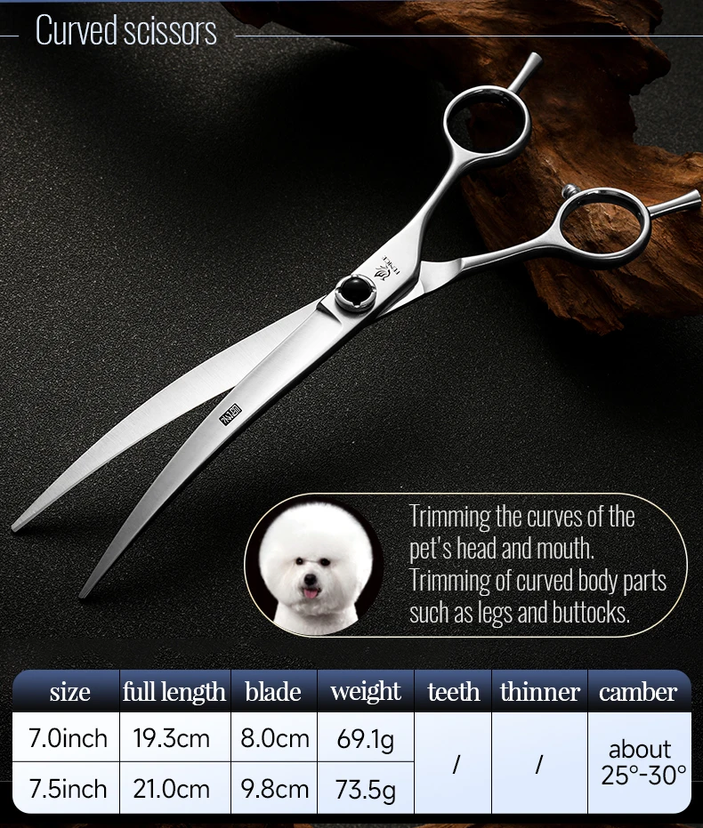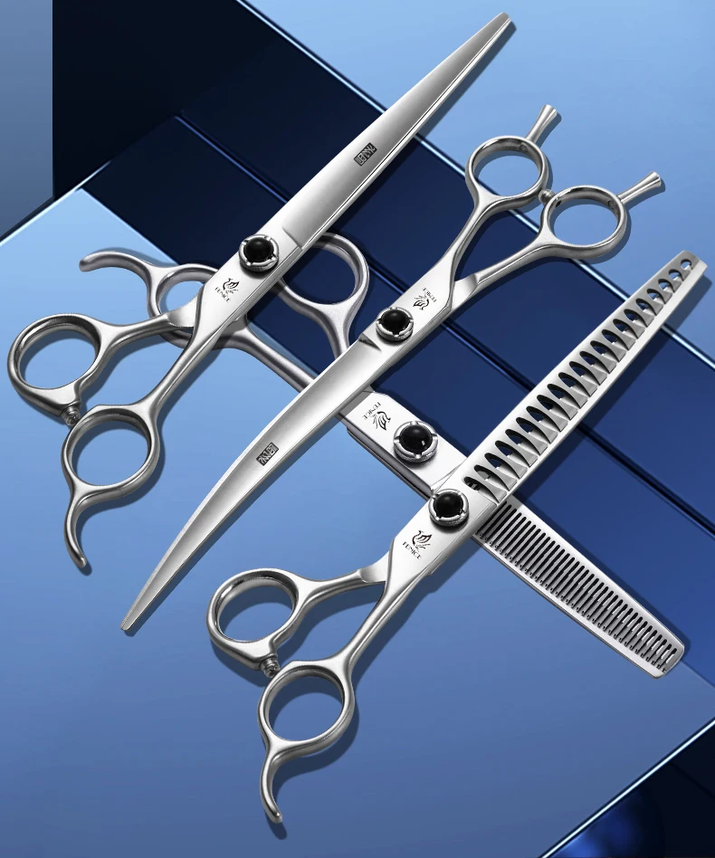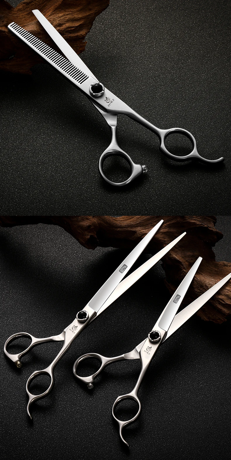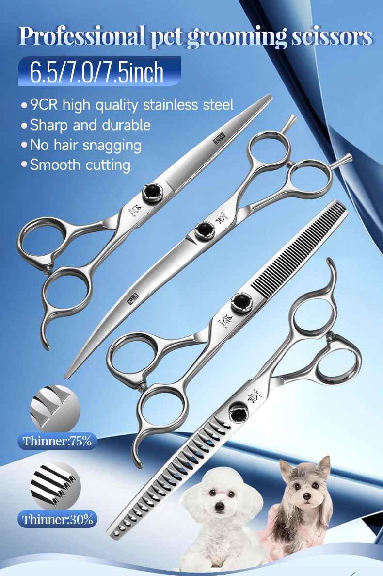 Fenice 6,5 7 7,5 pulgadas, tijeras profesionales para el cuidado de mascotas, tijeras rectas, adelgazantes y curvas para el cuidado de perros, herramienta de aseo para perros Teddy Bomei