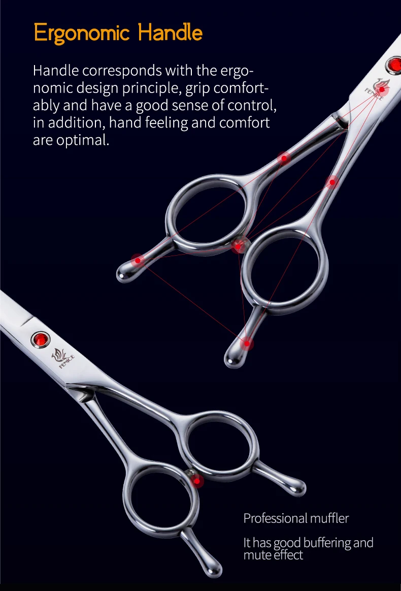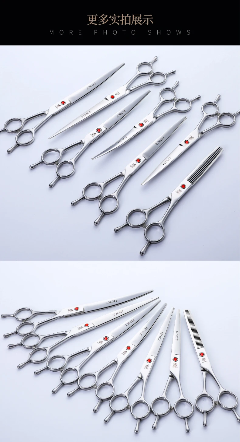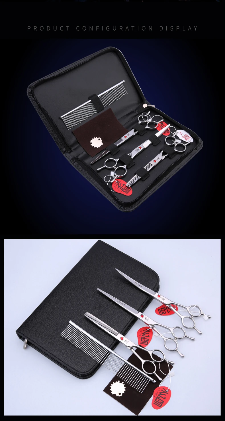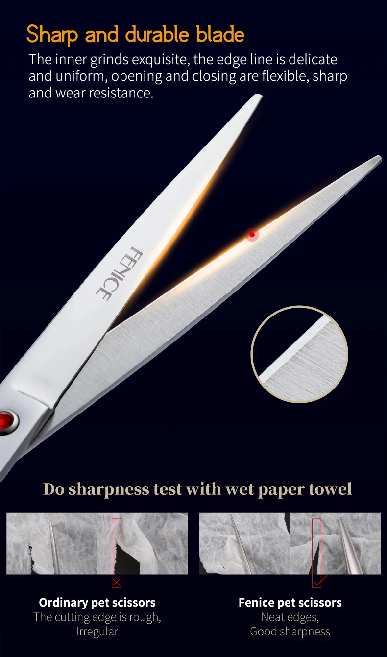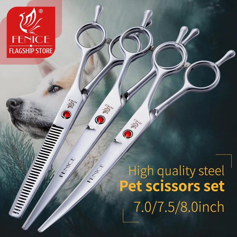 Fenice-Juego de tijeras de aseo profesional para perros, kit de tijeras rectas, curvadas y de adelgazamiento, 7/7 pulgadas, 5/8 pulgadas