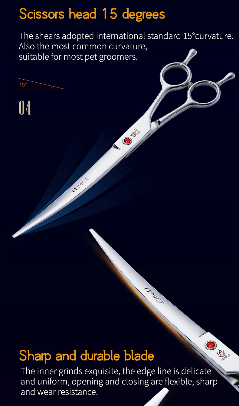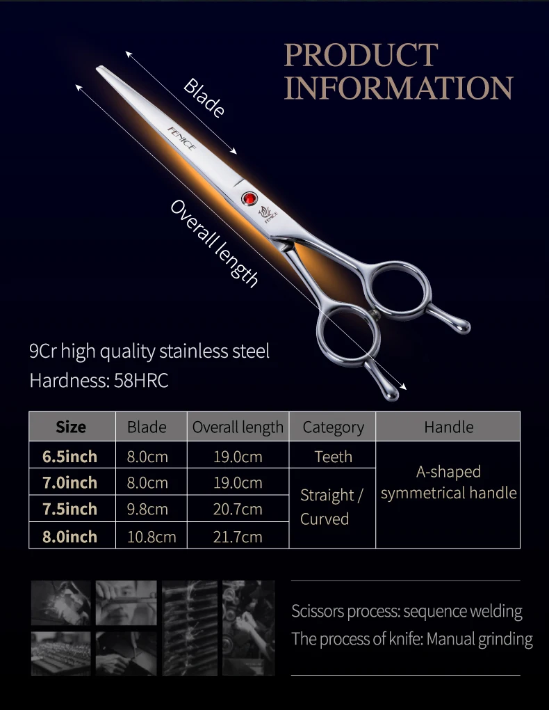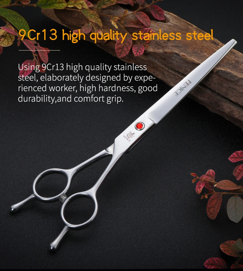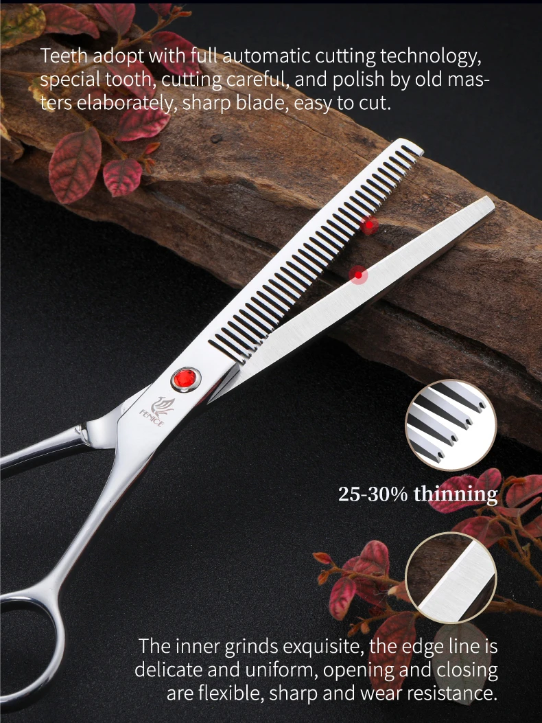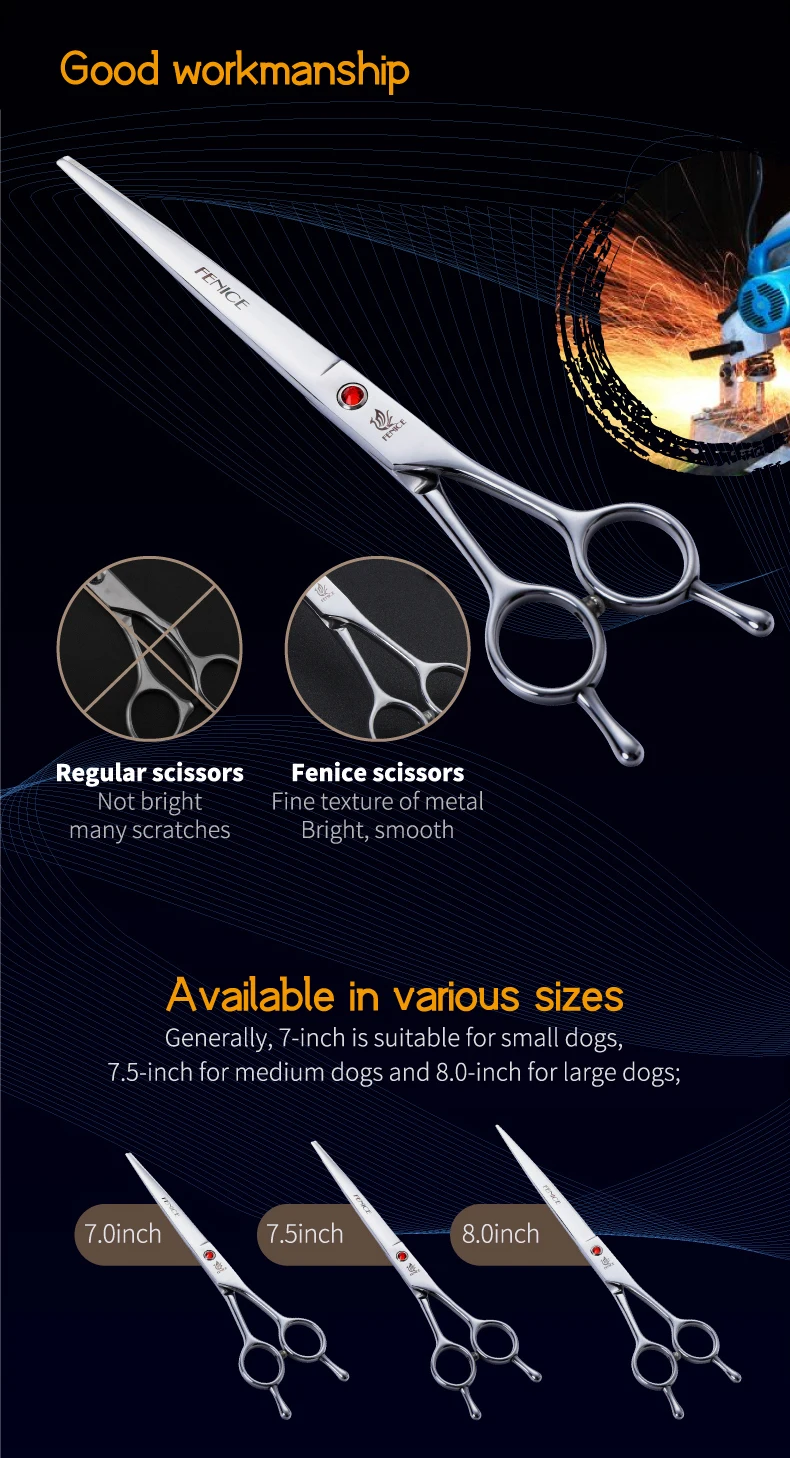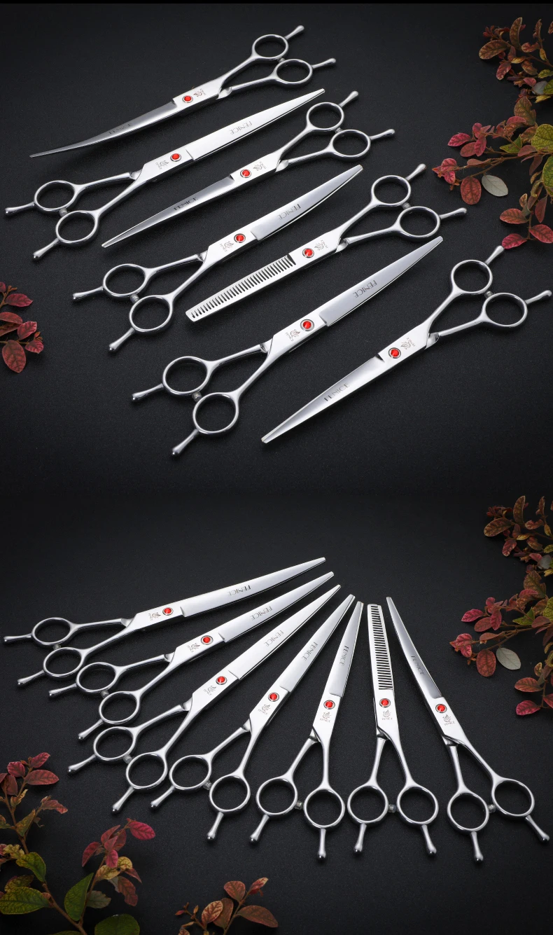 Fenice-Juego de tijeras de aseo profesional para perros, kit de tijeras rectas, curvadas y de adelgazamiento, 7/7 pulgadas, 5/8 pulgadas