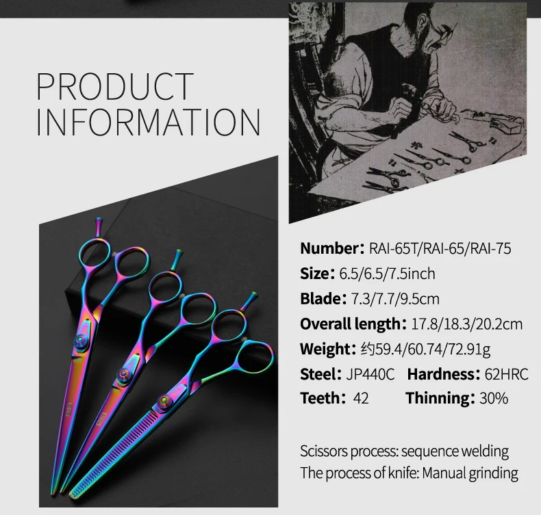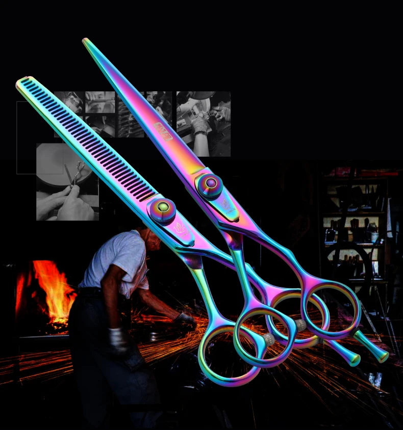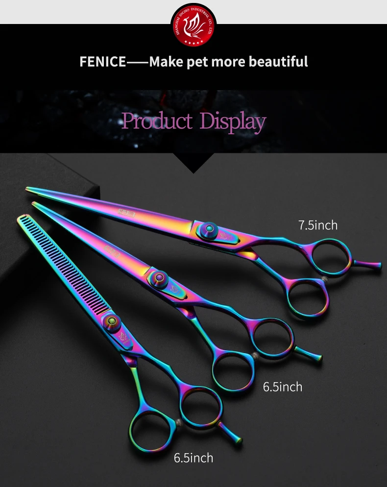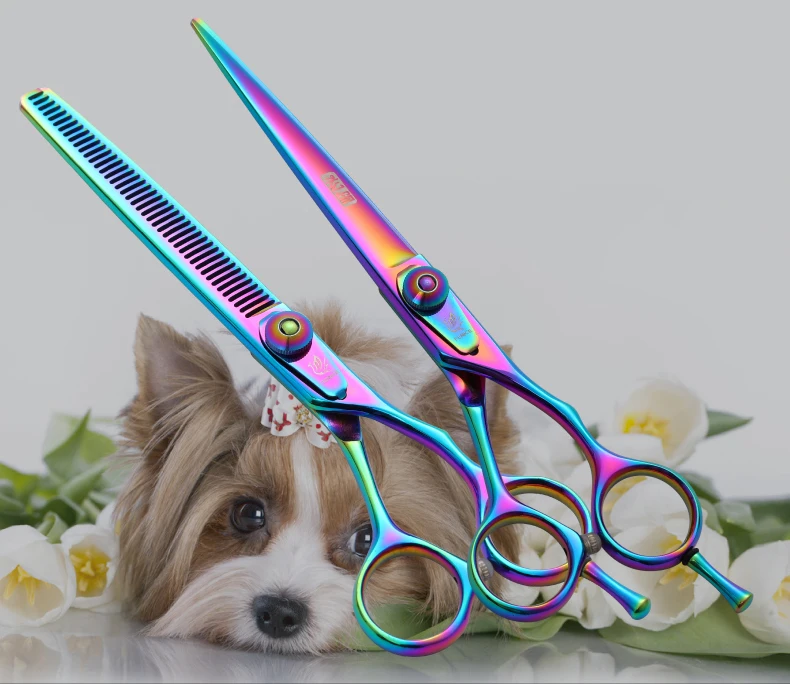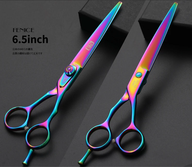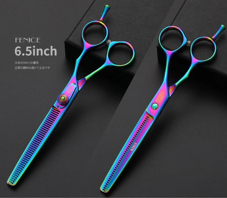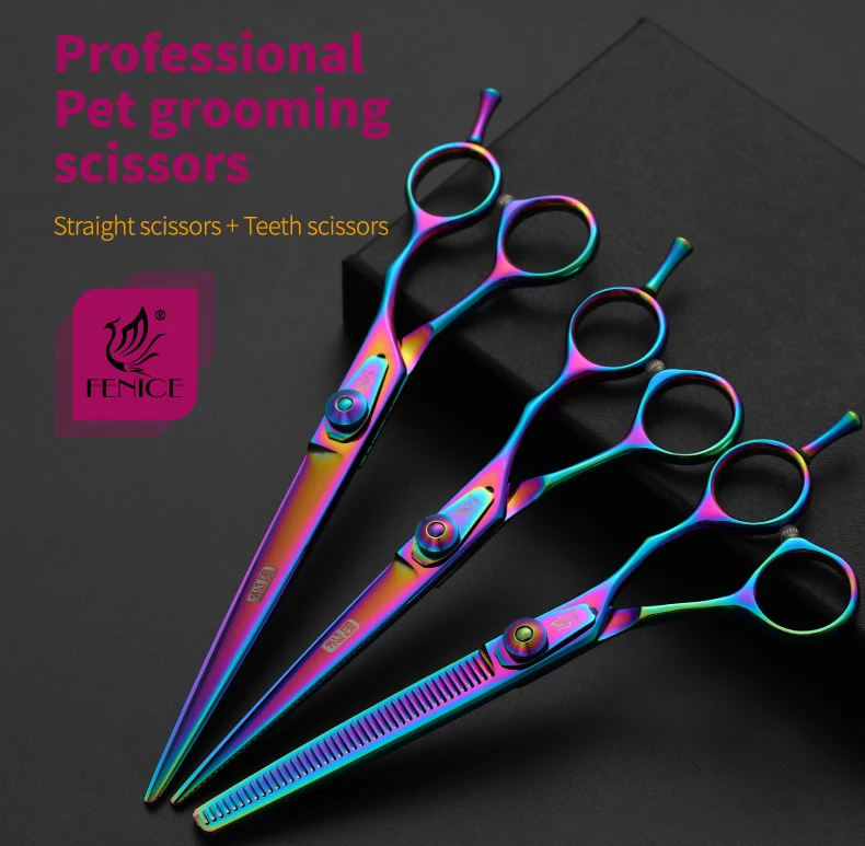 Fenice 6,5/7,5 pulgadas, set de tijeras de corte y adelgazamiento para perros, juego de tijeras para perros, kit de tijeras, tasa de adelgazamiento 30%.