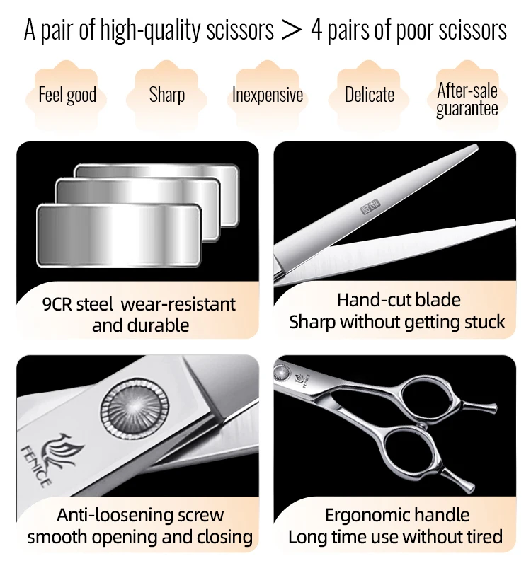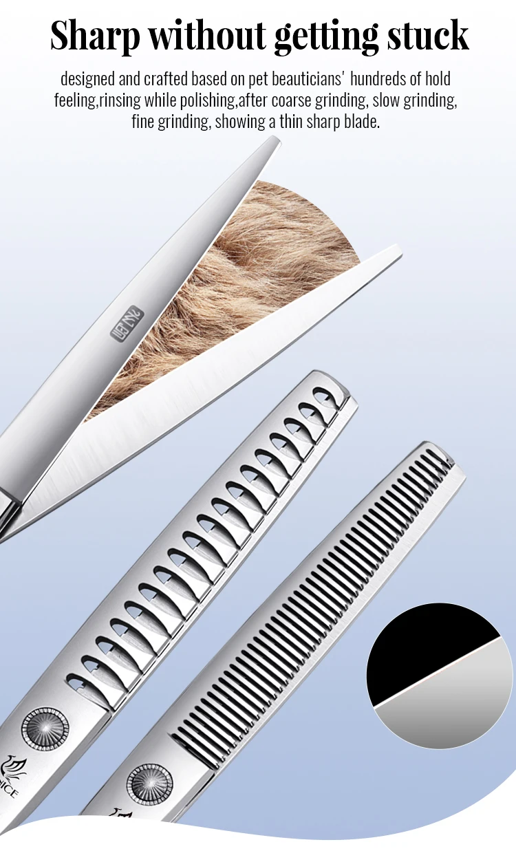 Muy satisfecho con la calidad de esta tijera. Perfecto para recortar rápidamente perros que obstruyen el ruido del cortapelos.