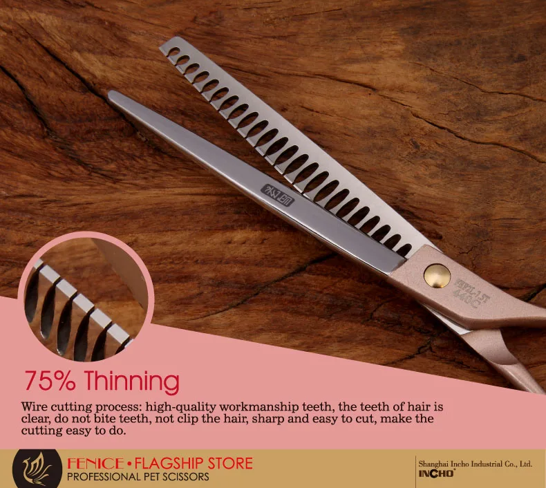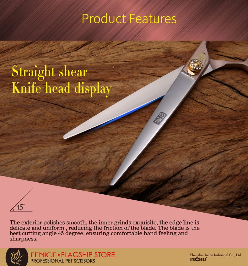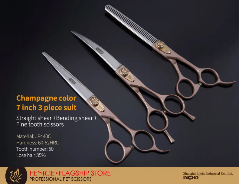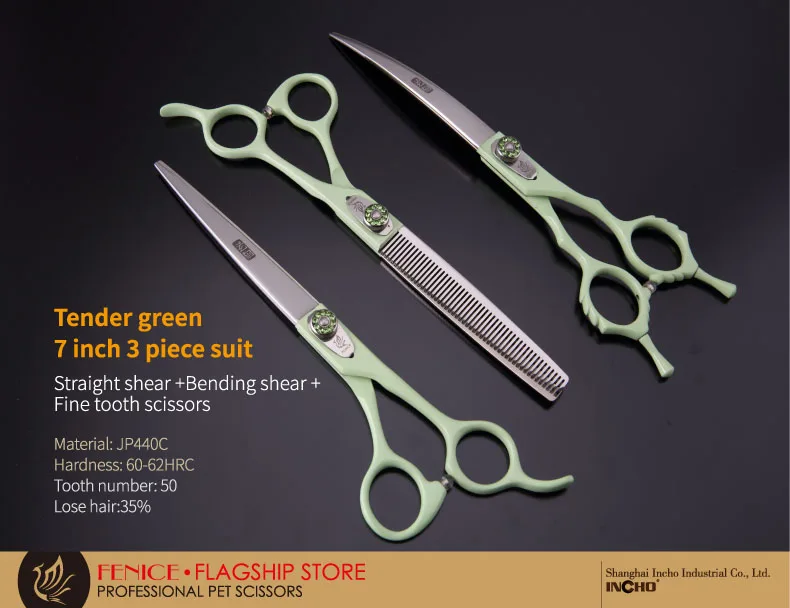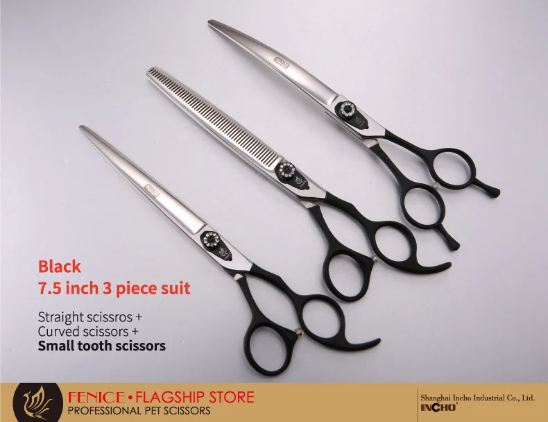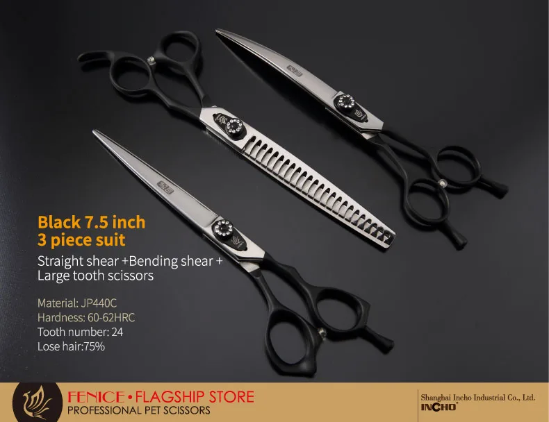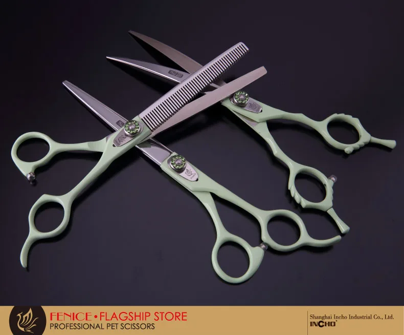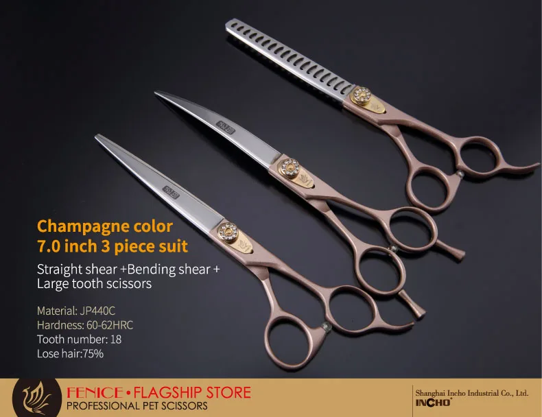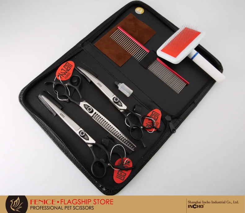Fenice Juego de tijeras para perros de acero JP 440C de 7/7.5 pulgadas, kits de tijeras para el cuidado de mascotas rectas, adelgazantes y curvas, Bichon Teddy Bomei, juego de herramientas