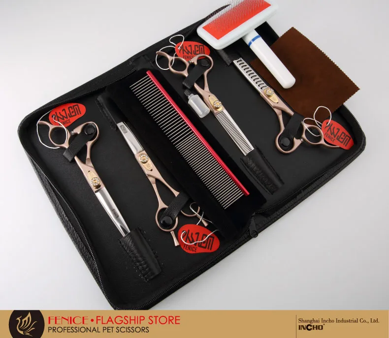 Juego de tijeras para perros Fenice, kits de tijeras para el cuidado de mascotas rectos, adelgazantes y curvos, juego de tijeras para el cuidado de perros Bichon Teddy Bomei, juego de herramientas