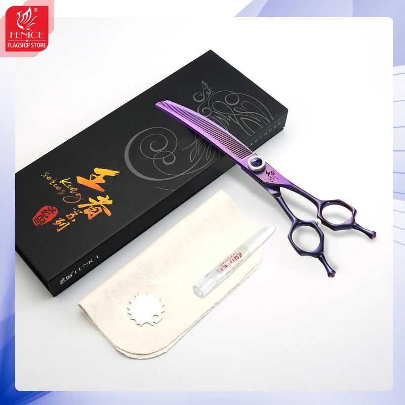 Descubre nuestras tijeras profesionales Fenice King Series de 7.0 pulgadas, diseñadas específicamente para peluqueros caninos que buscan precisión y calidad superior en el cuidado de mascotas. Perfectas con hojas curvas finas y gruesas para adelgazar, corte corporal y facial, proporcionando control total y acabados profesionales en cada sesión de peluquería.