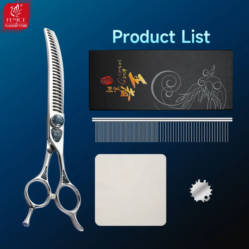 Fenice King Series VG10 Steel Shell Bearing Screws 7/7.5Inch Dog Grooming Straight/Curved Thinner Chunker Scissors Pet Scissors