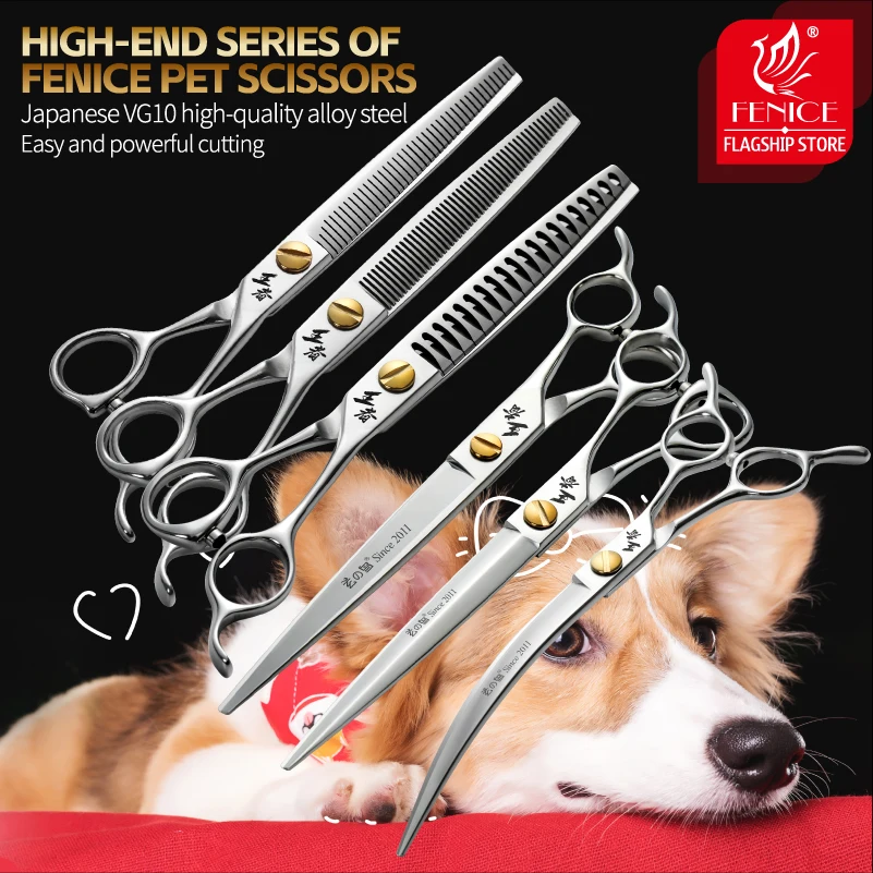 Fenice 7/7. Tijeras profesionales de aseo para mascotas de 5/8 pulgadas, rectas, adelgazantes y curvas, tijeras de aseo para perros, juego de herramientas de aseo para perros Teddy Bomei