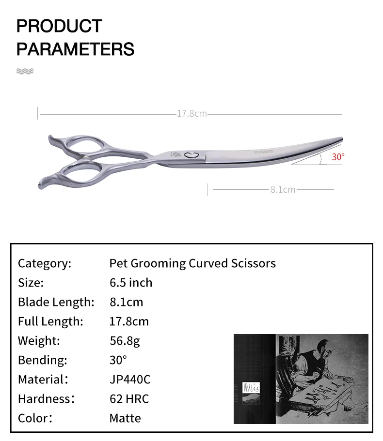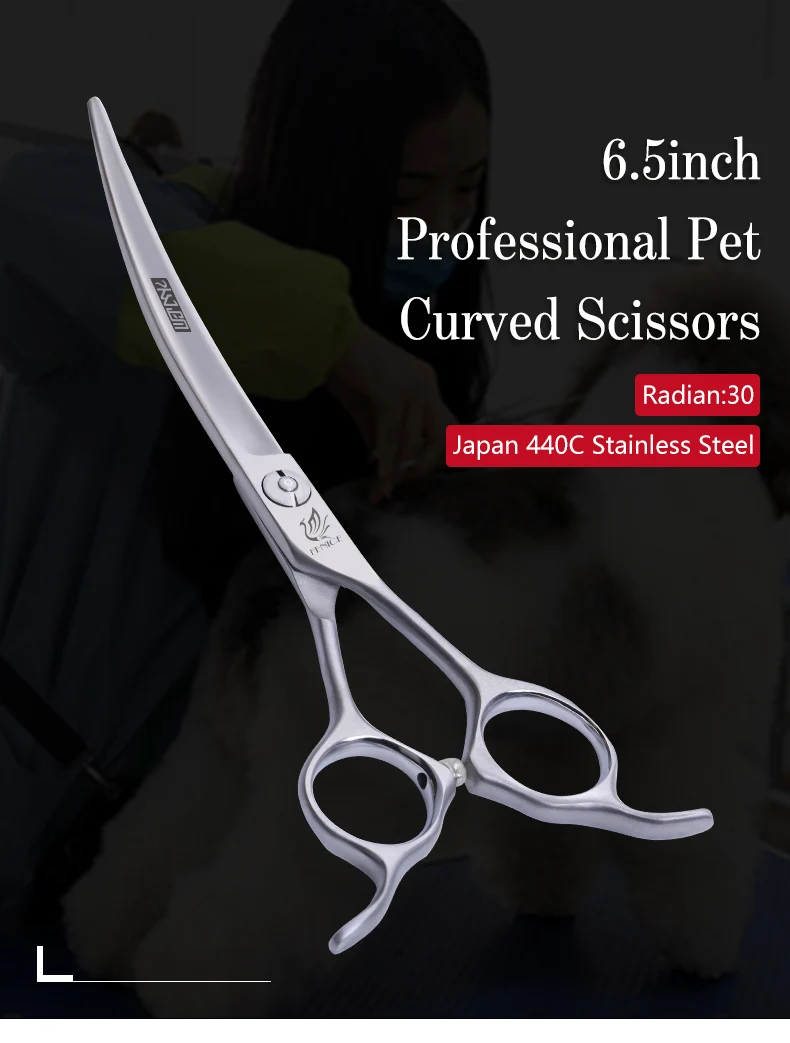 Fenice-Kit profesional de tijeras curvadas para mascotas, 6,5 pulgadas, tijeras de corte para el cuidado del perro, makas, Tijas