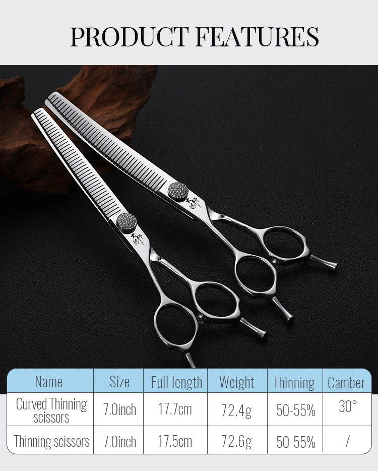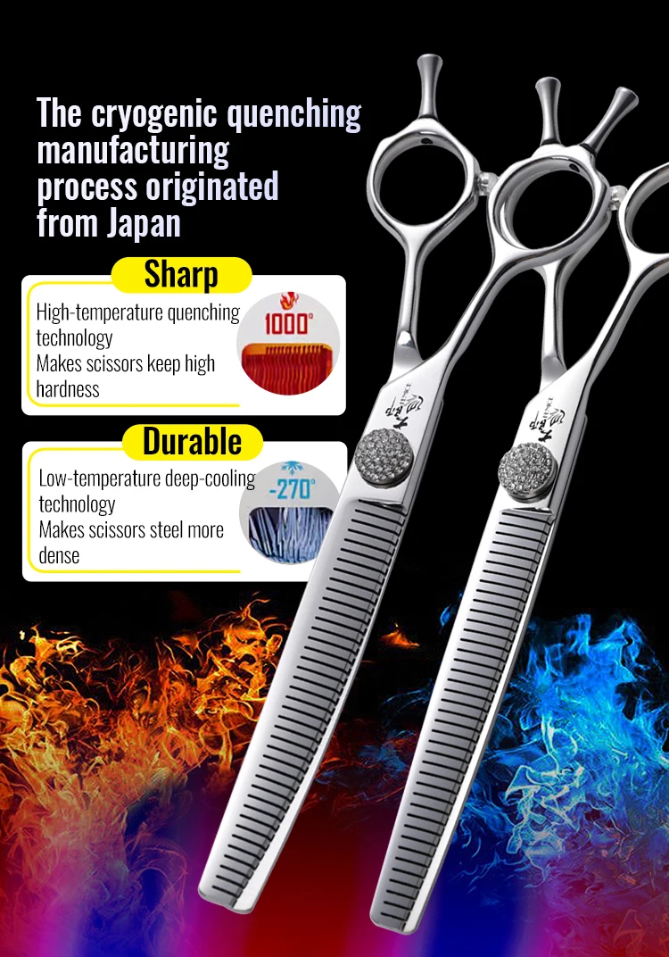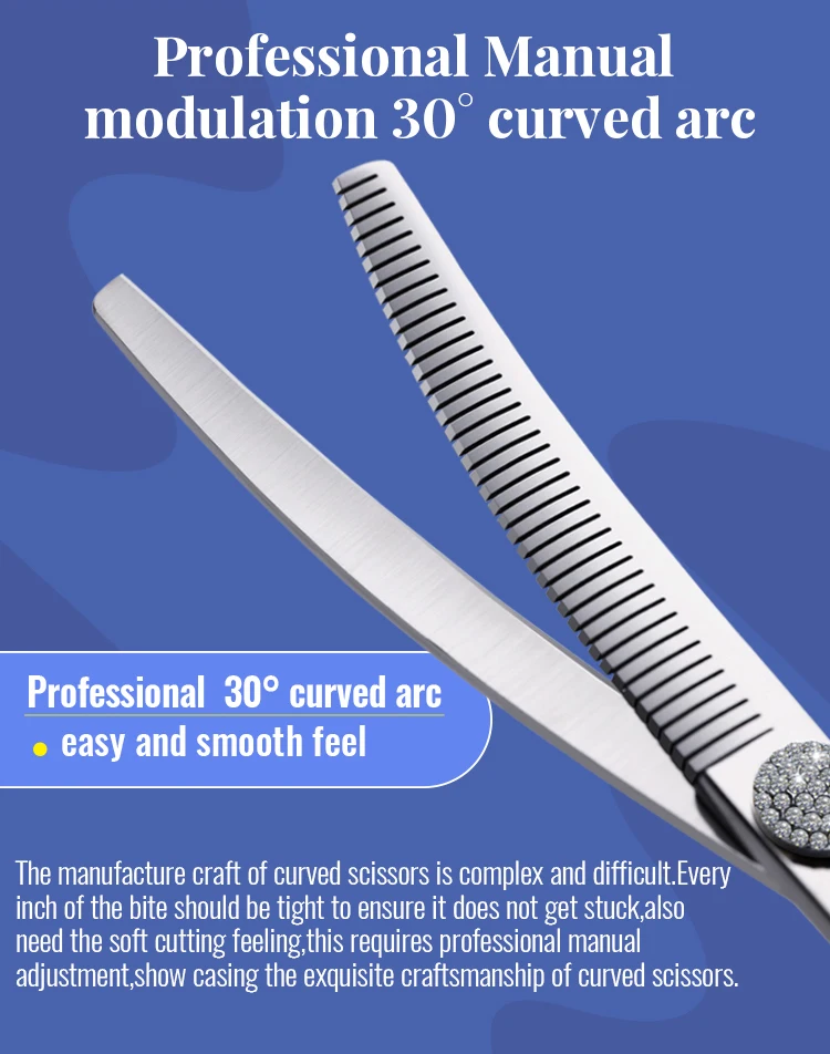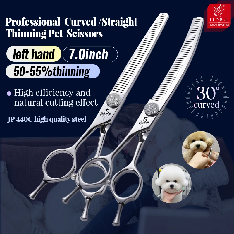 Fenice, tijeras de aseo para perros de mano izquierda de 7 pulgadas, tijeras para perros, tijeras curvas de adelgazamiento/Tijeras rectas, productos para perros, suministros para mascotas