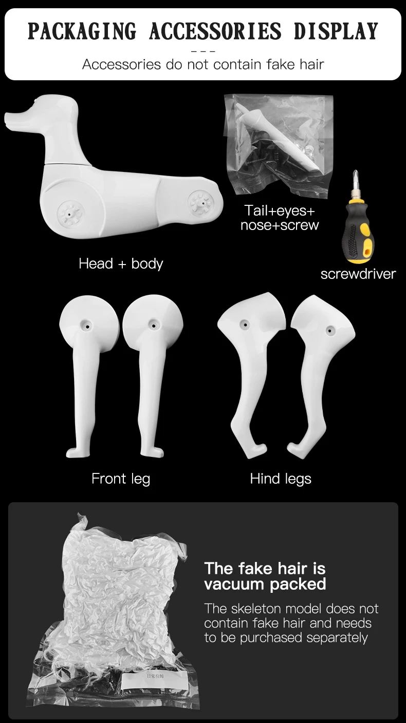 Fenice, simulación de mascota, cuidado del cabello, modelo de perro falso, práctica de perro, modelo de esqueleto estándar, pelo falso de cuerpo completo para perro