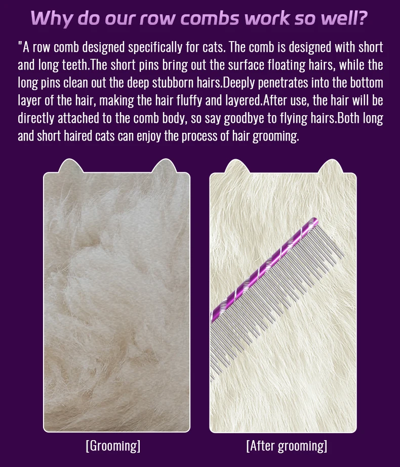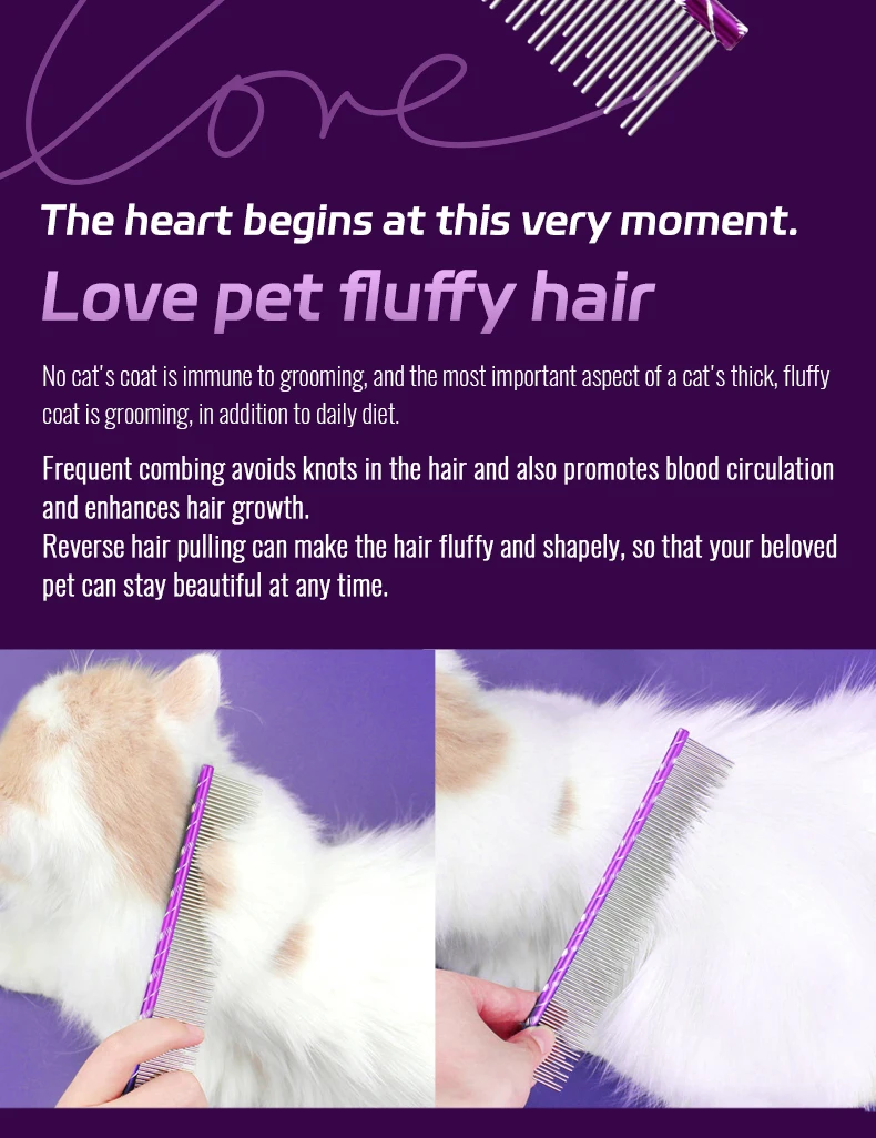 Fenice-peine de aseo profesional para gatos, peines para mascotas, cepillo cónico de acero inoxidable, alfileres para el cuidado del cabello de gatos