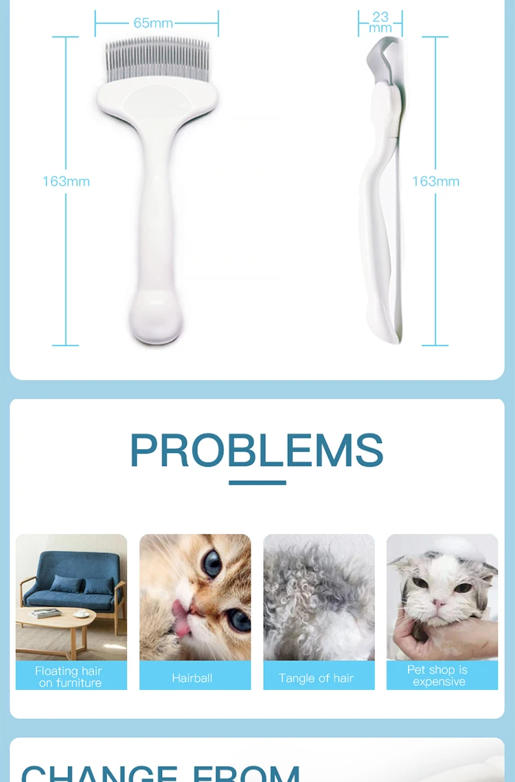 Cepillo de peine para mascotas Fenice, cuchillo de rastrillo de nudo abierto profesional, cepillo de peine para mascotas y gatos, productos de limpieza para mascotas
