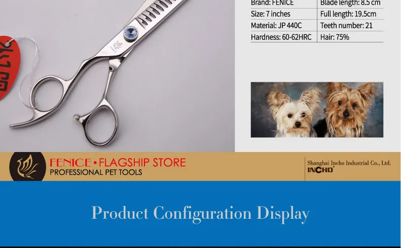Fenice profesional JP440C mango izquierdo de acero 7/7,5 pulgadas tijeras de peluquería para perros y mascotas tijeras para tiburones tasa de adelgazamiento 75%