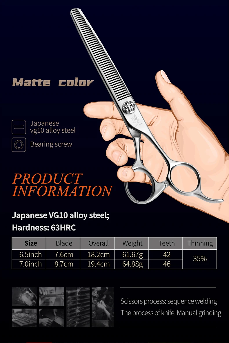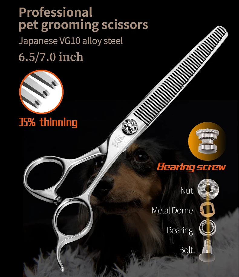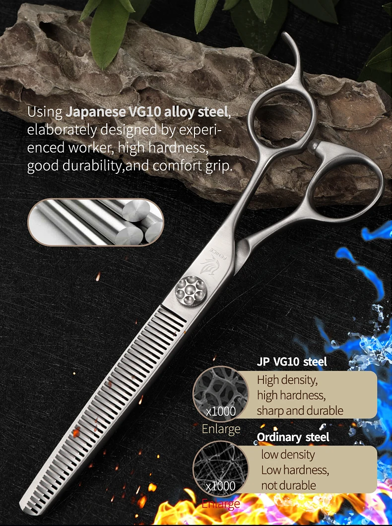 Fenice Professional 6,5/7,0 pulgadas JP VG10 Tijeras DE ASEO canino de acero para perros Tijeras de adelgazamiento Tasa de adelgazamiento 35%